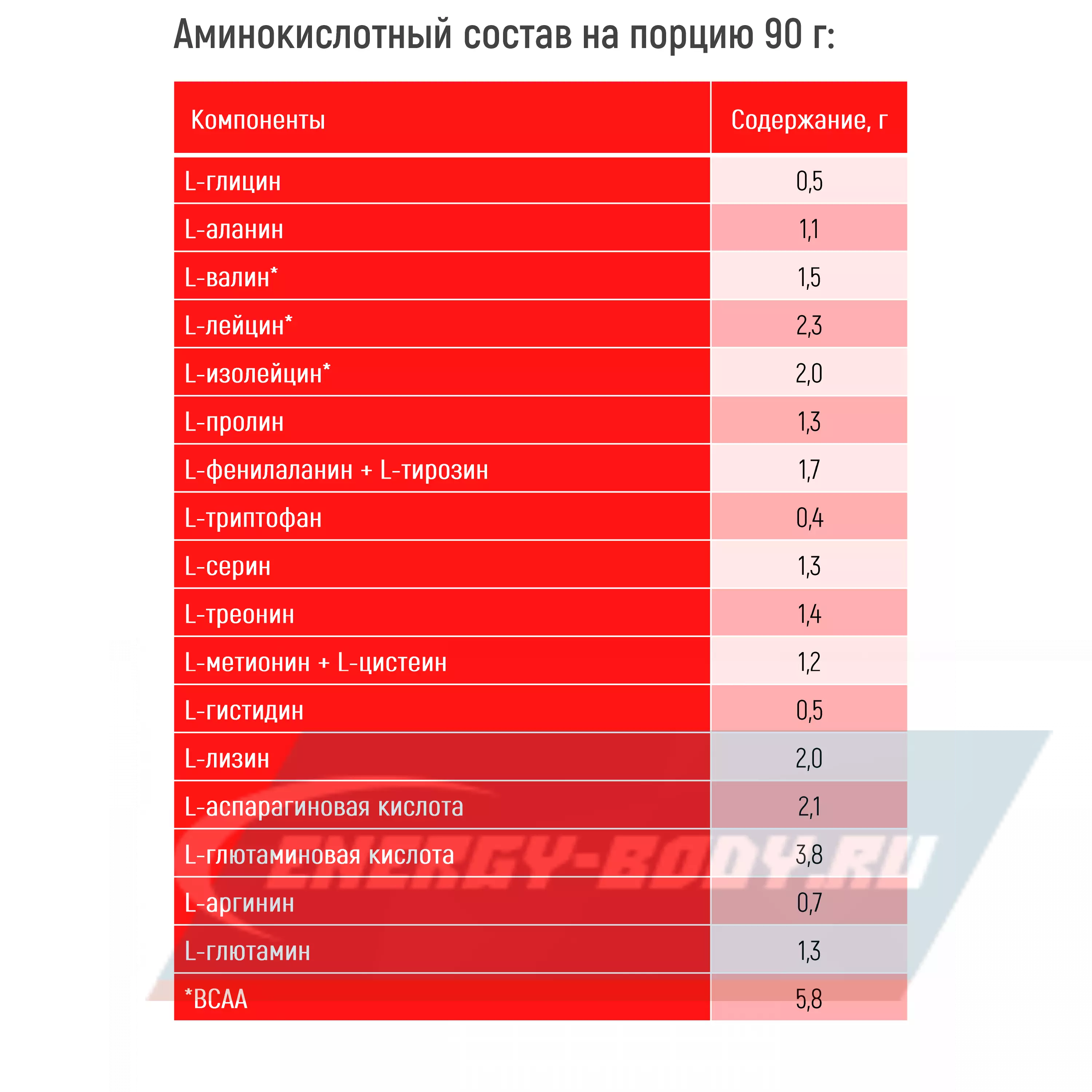 Подобные эффекты достигаются благодаря тщательно подобранному составу и четко выверенной концентрации каждого отдельного компонента. Научно разработанная формула содержит сбалансированный белковый комплекс с высокой биологической ценностью и биодоступностью, содержащий комбинацию яичного альбумина и ультрафильтрационного концентрата сывороточного. Эта комбинация различных белков снабжает Ваше тело аминокислотами, в том числе аминокислотами с разветвленными цепочками (более 9 грамм на порцию) и глютамином (более 2 грамм на порцию), которые препятствуют разрушению мышечных клеток и стимулируют синтез белка в организме при интенсивной тренировке.