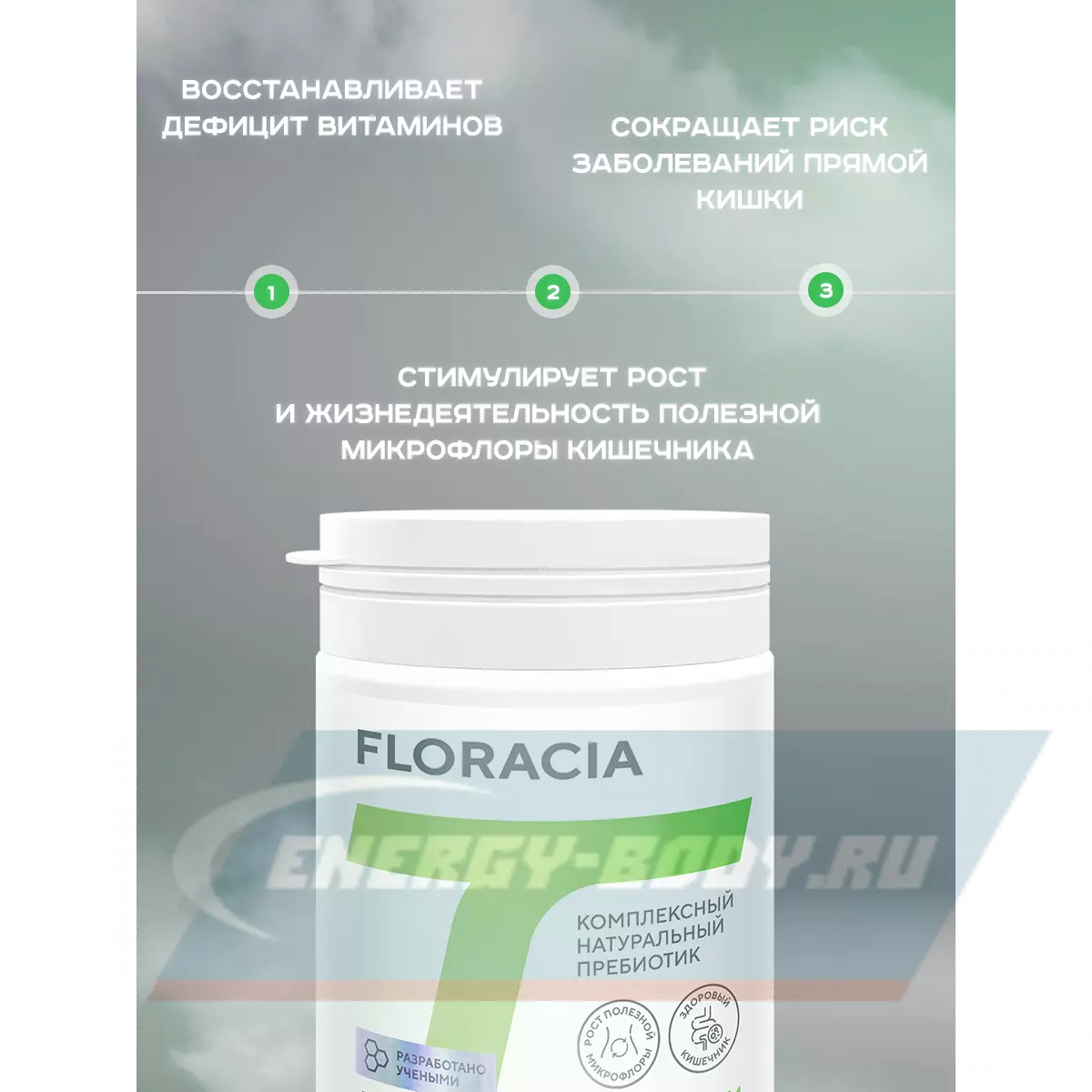 - Оптимальное соотношение натурального диетического биоволокна Fibregum и фруктоолигосахаридов. комплексный пребиотик, обеспечивает рост собственной полезной микрофлоры человека, необходимой для нормального функционирования организма, подавляет нежелательную микрофлору, предупреждая развитие дисбактериозов и вызываемых ими заболеваний. Floracia - стабилизирует работу кишечника, нормализует стул. Ее систематическое потребление снижает риск возникновения воспалительных и онкологических заболеваний пищеварительного тракта. Floracia - способствует улучшению и частично замещает функции печени, обезвреживая продукты метаболизма белковых веществ, в первую очередь, аммиака, тем сам предотвращает отравление центральной нервной системы.