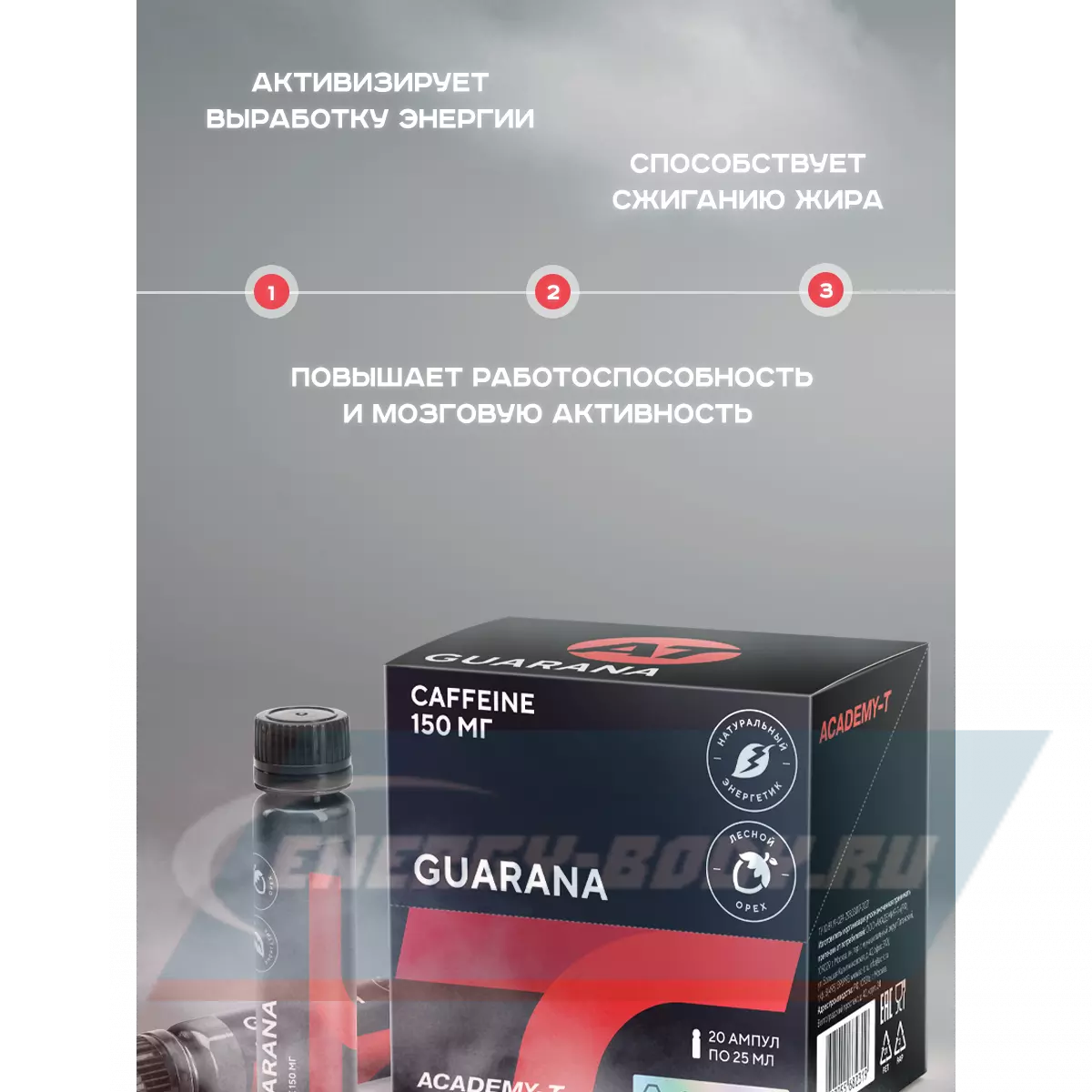 Гуарана–сбалансированный натуральный энергетик нового поколения, для увеличения энергообеспечения, повышения тонуса и работоспособности.