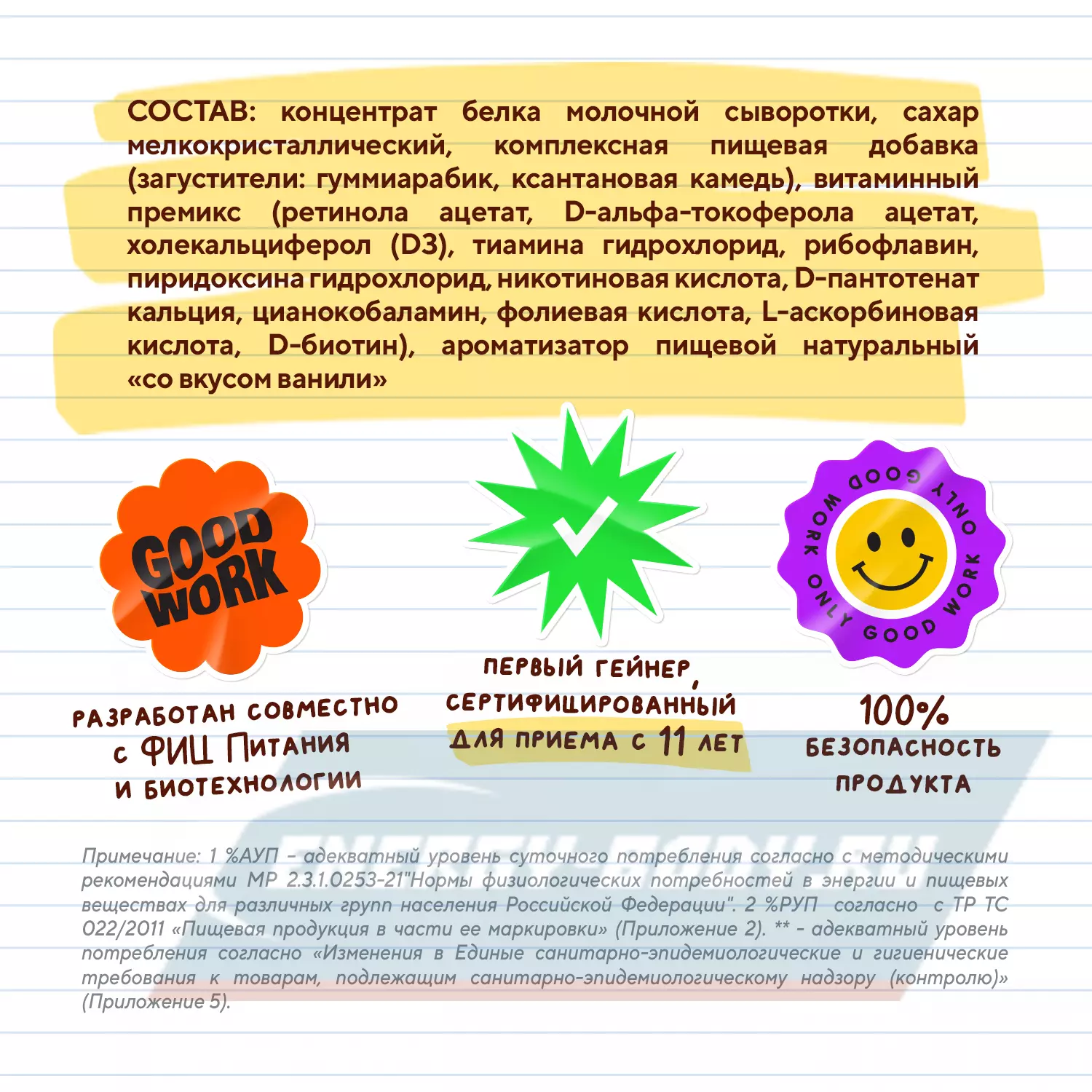 Простота использования: Добавьте Junior Protein в молоко или воду и взболтайте в шейкере или блендере, и ваш ребенок будет готов к активному дню. Можно на основе протеинового коктейля сделать блины или добавит его в кашу. Он также идеально подходит для перекусов после тренировок.