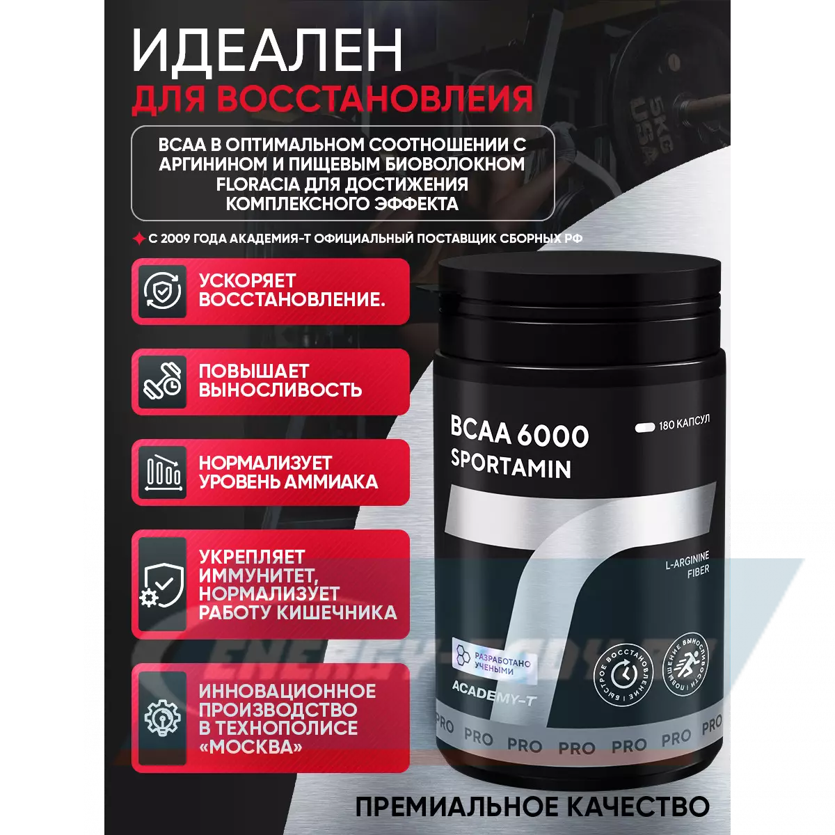 SPORTAMIN ВСАА 6000 создан российскими учеными в результате многолетних теоретических и экспериментальных исследований, удостоенных Государственных премий СССР и РФ.