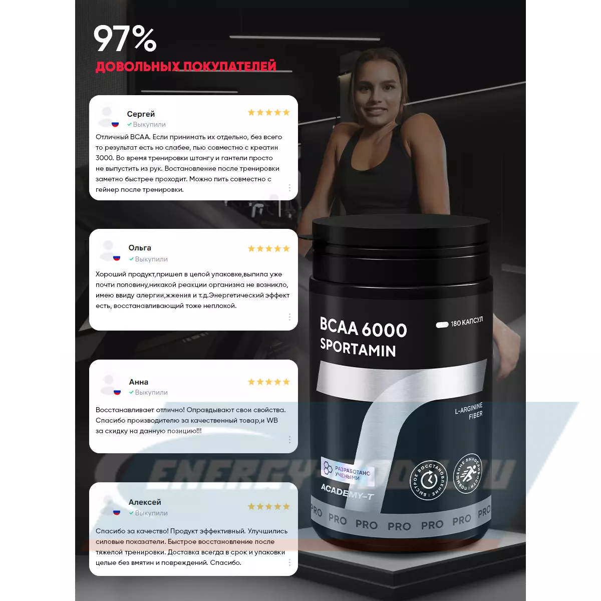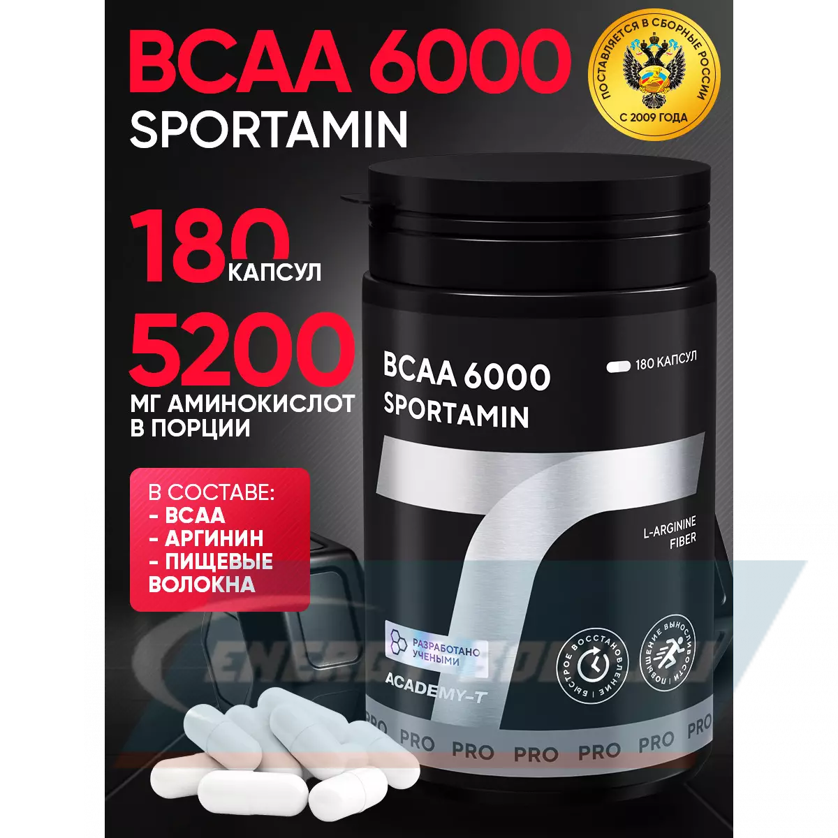Академия-Т BCAA 6000 SPORTAMIN 180 капсул — Для роста мышц, микрофлоры кишечника и восстановления