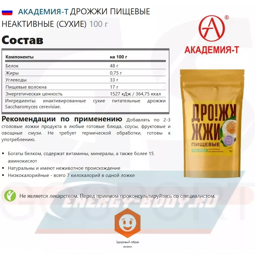 Состав Академия-Т Дрожжи пищевые неактивные (сухие)