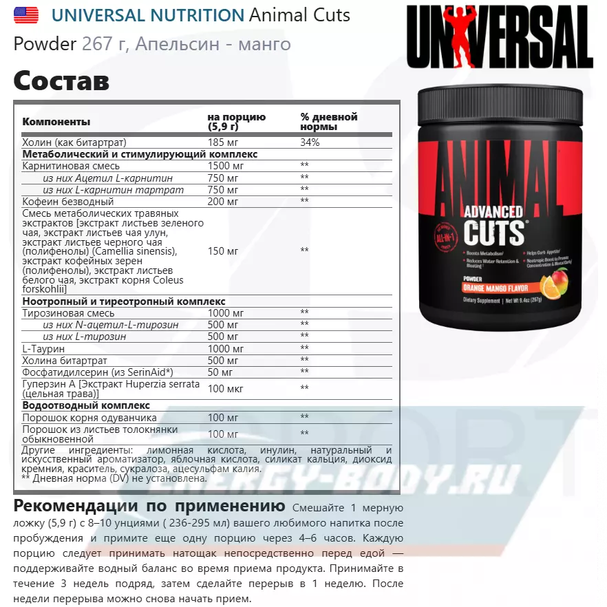 UNIVERSAL NUTRITION Animal Cuts Powder 267 г, Апельсин - манго  UNIVERSAL NUTRITION Animal Cuts Powder 267 г, Апельсин - манго  UNIVERSAL NUTRITION Animal Cuts Powder 267 г, Апельсин - манго  UNIVERSAL NUTRITION Animal Cuts Powder 267 г, Апельсин - манго
