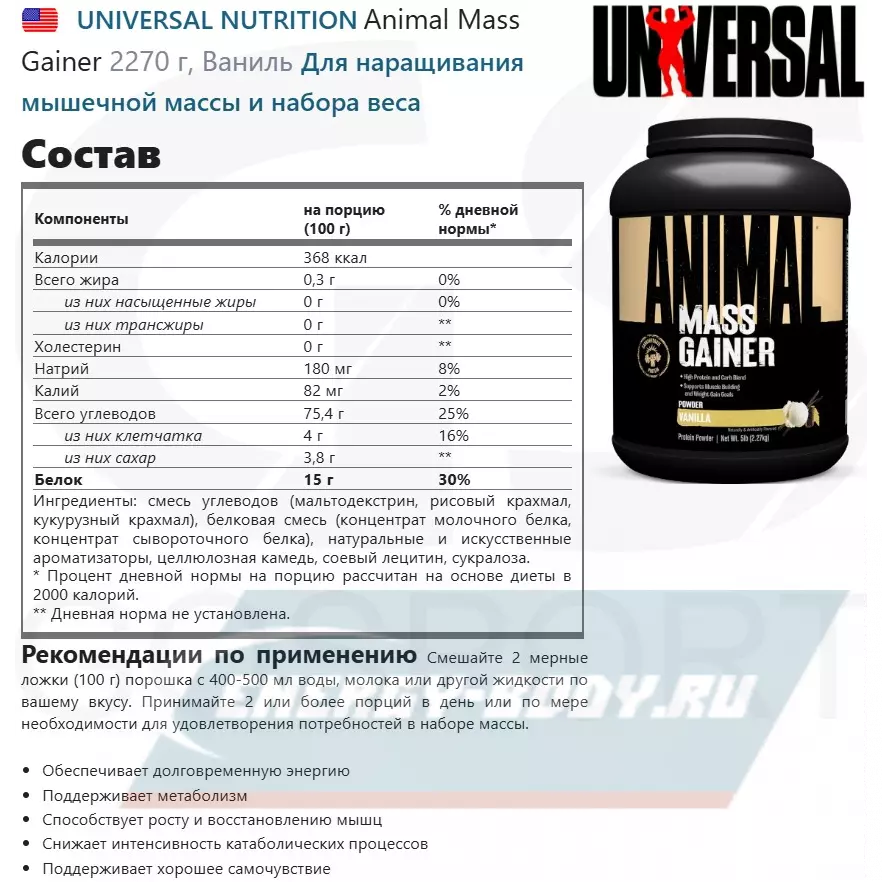 Полное описание Animal Mass Gainer