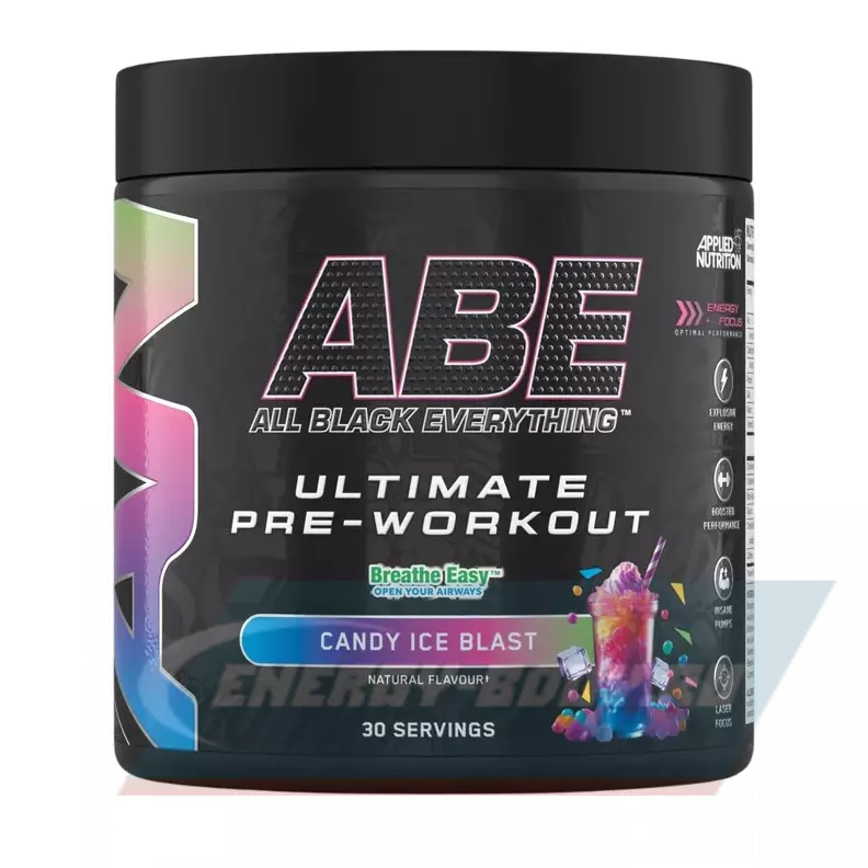 Предтренировочный комплекс от Applied Nutrition ABE - Black Everything Ultimate PRE-WORKOUT - уникальная смесь наиболее важных и исследованных активных ингредиентов, которые помогают повысить физическую работоспособность, снизить усталость и обеспечить постоянную концентрацию внимания на протяжении всей тренировки, максимально раскрывая потенциал вашего тела.
