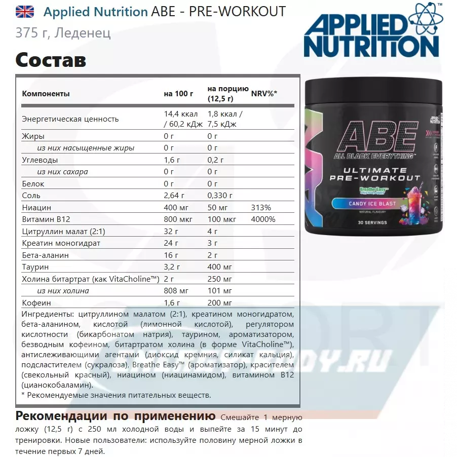 Состав APPLIED NUTRITION ABE - PRE-WORKOUT
