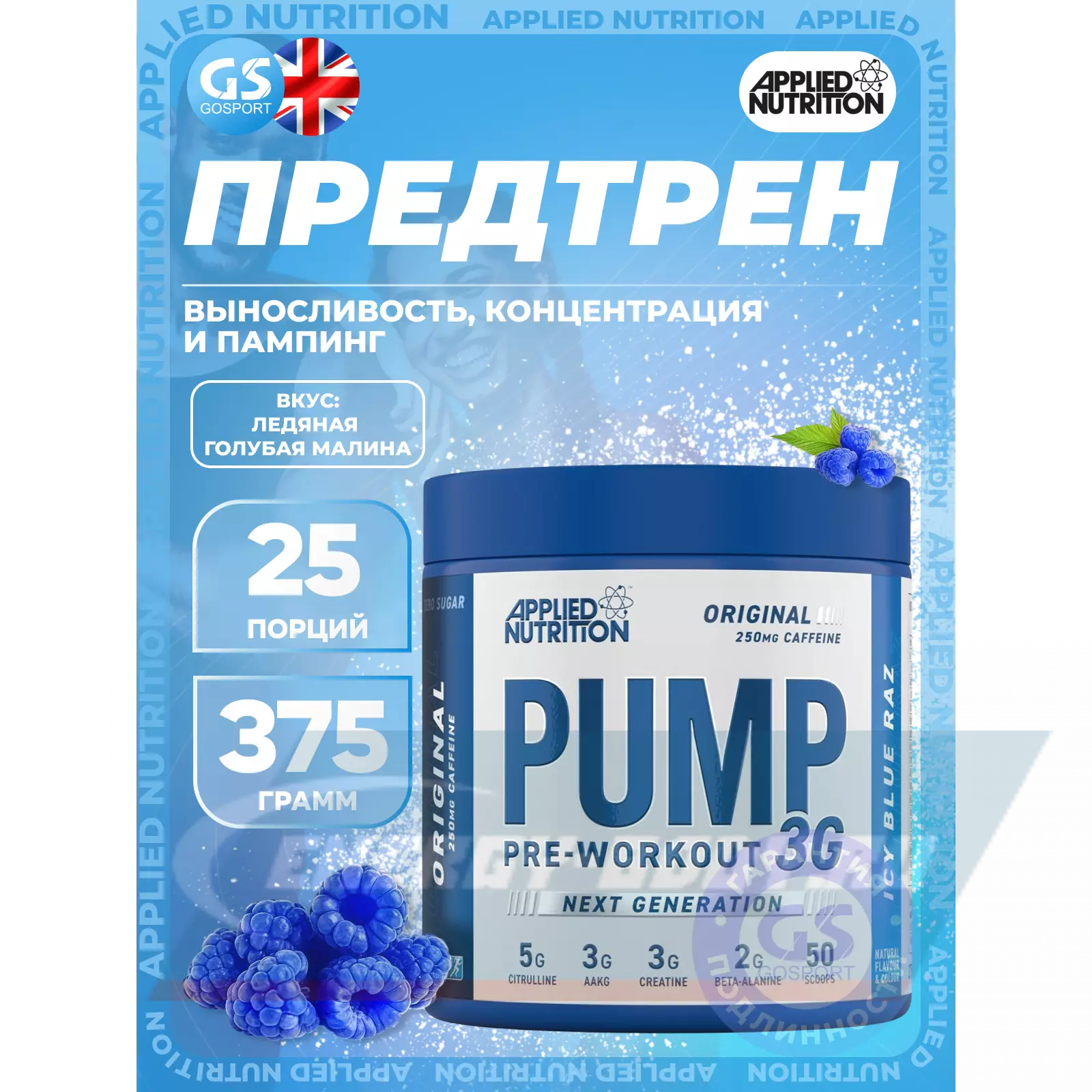 APPLIED NUTRITION Pump 3G Pre Workout 375 г, Ледяная голубая малина — Выносливость, концентрация и пампинг