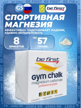 Новая магнезия от Be First в новой экономичной упаковке! Магнезия позволяет эффективно подсушивать потеющие ладони, что увеличивает силу сцепления между ладонью и спортивным снарядом (грифом штанги или турником), позволяя атлету не отвлекаться на удержание снаряда в руках и больше сосредоточиться на технике выполнения упражнения. Магнезия повышает безопасность тренировок и соревнований, снижая вероятность соскальзывания ладоней. Это особенно важно в силовых видах спорта, а также в таких видах как гимнастика, полдэнс и спортивный альпинизм.