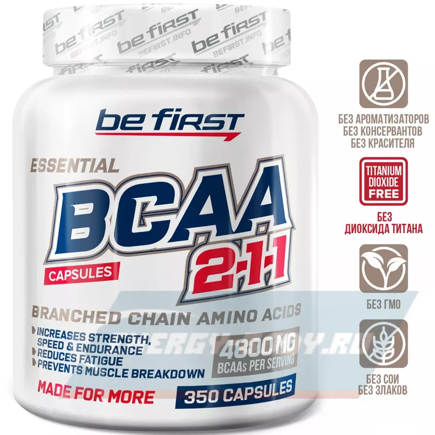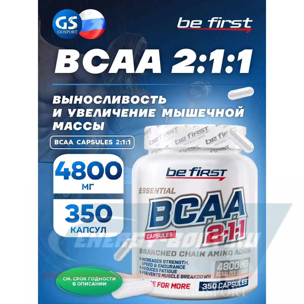 Be First BCAA 2:1:1 Capsules - комплекс из 3 незаменимых аминокислот: L-лейцин, L-изолейцин, L-валин в классическом соотношении 2:1:1 в удобной для приема капсулированной форме.
