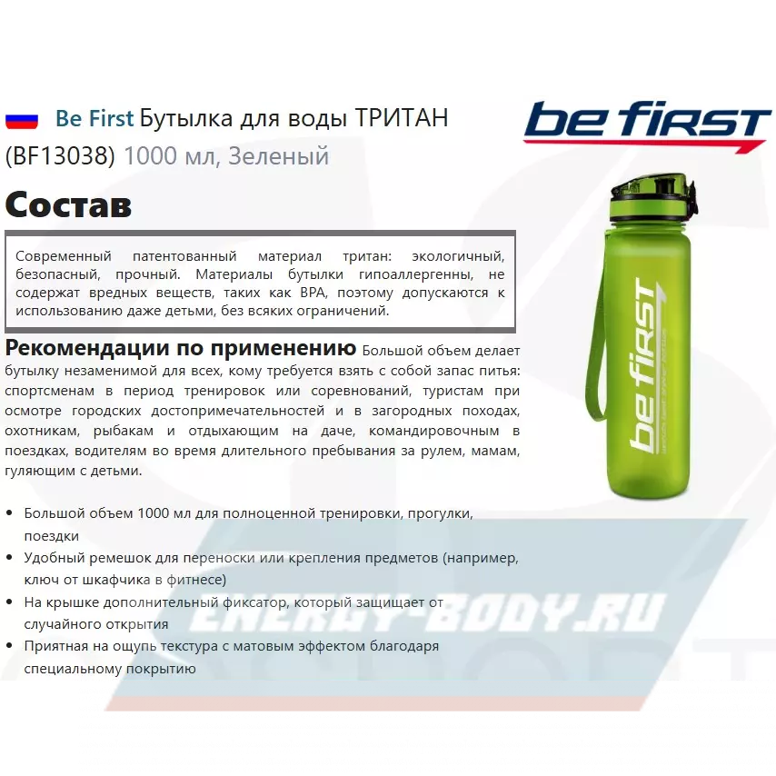 Состав Be First Бутылка для воды ТРИТАН (BF13038)