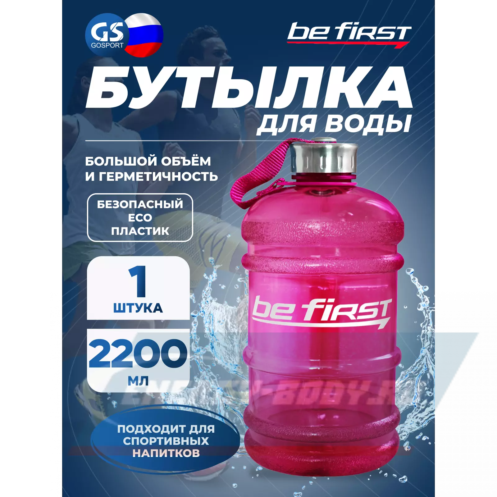 Спортивная бутылка для воды 2200 мл в матовом исполнении от Be First! Объем бутылки увеличен до 2200 мл – это значит, что Вы сможете взять на тренировку или соревнования намного больше воды, чем обычно и не будете испытывать жажды, даже если пребывание там продлится целый день. Спортивную бутылку 2200 мл удобно держать в руке – она не выскальзывает, благодаря особой ручке и рифлению на ней.