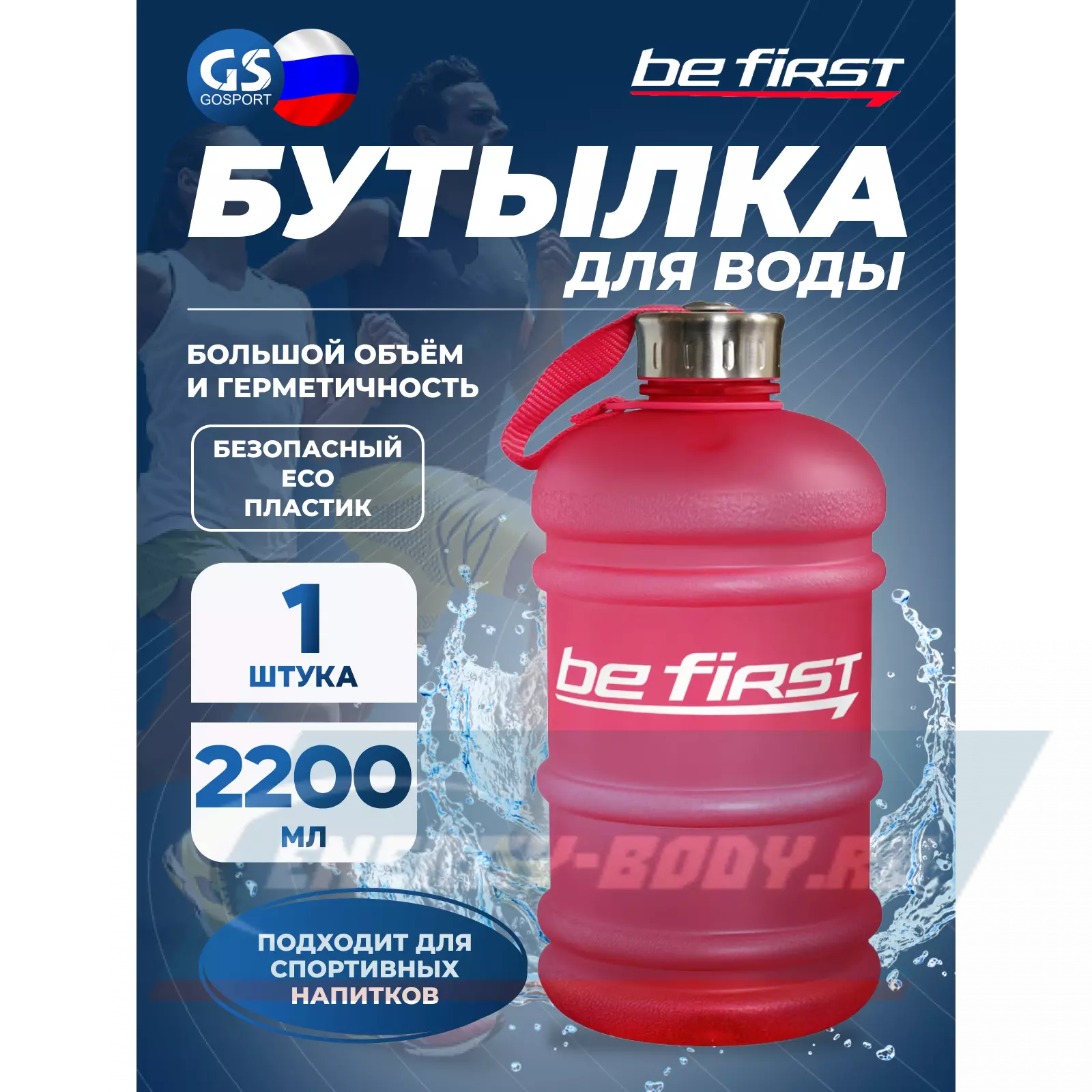 Спортивная бутылка для воды 2200 мл в матовом исполнении от Be First! Объем бутылки увеличен до 2200 мл – это значит, что Вы сможете взять на тренировку или соревнования намного больше воды, чем обычно и не будете испытывать жажды, даже если пребывание там продлится целый день. Спортивную бутылку 2200 мл удобно держать в руке – она не выскальзывает, благодаря особой ручке и рифлению на ней.
