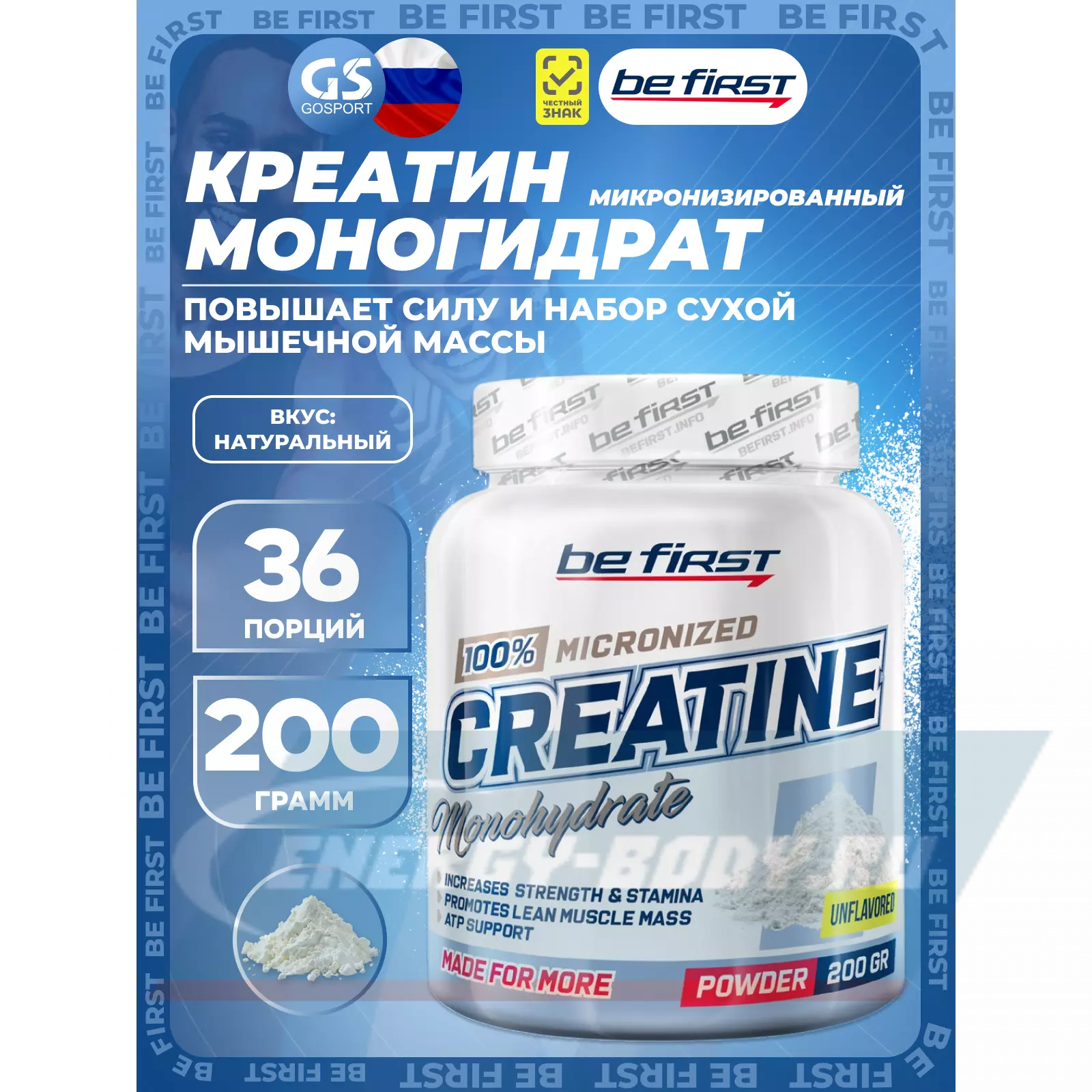 Be First Creatine powder 200 г, Натуральный — Выносливость, сила и восстановление