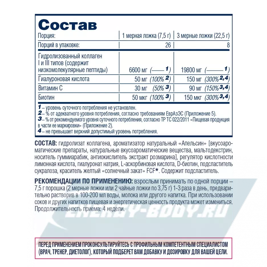 First Collagen + biotin + hyaluronic acid + vitamin C 200 г, Апельсин