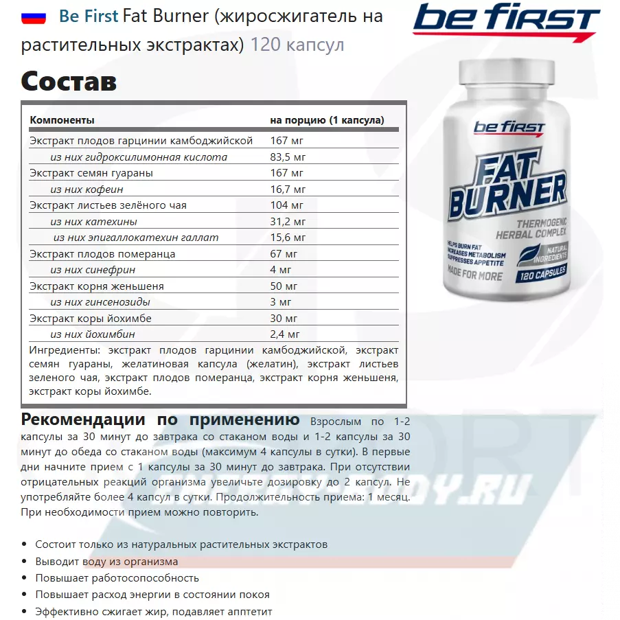 Состав Be First Fat Burner (жиросжигатель на растительных экстрактах)