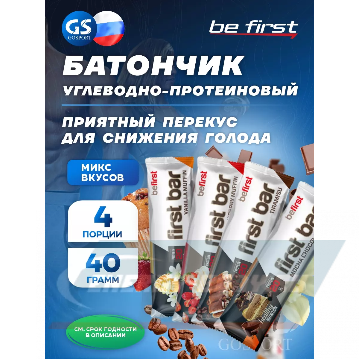 Be First First bar углеводно-протеиновый батончик 4 x 40 г, Микс — Приятный перекус для снижения голода