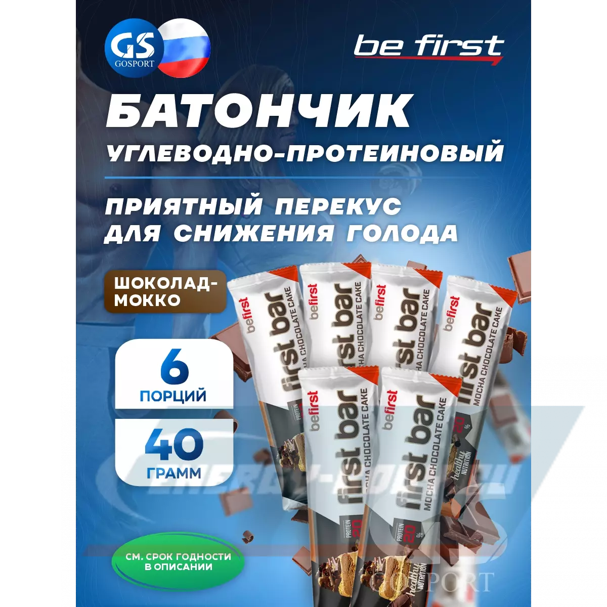 Be First First bar углеводно-протеиновый батончик 6 x 40 г, Шоколад-Мокко — Приятный перекус для снижения голода