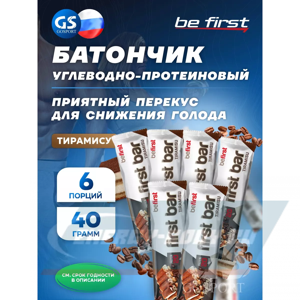 Be First First bar углеводно-протеиновый батончик 6 x 40 г, Тирамису — Приятный перекус для снижения голода