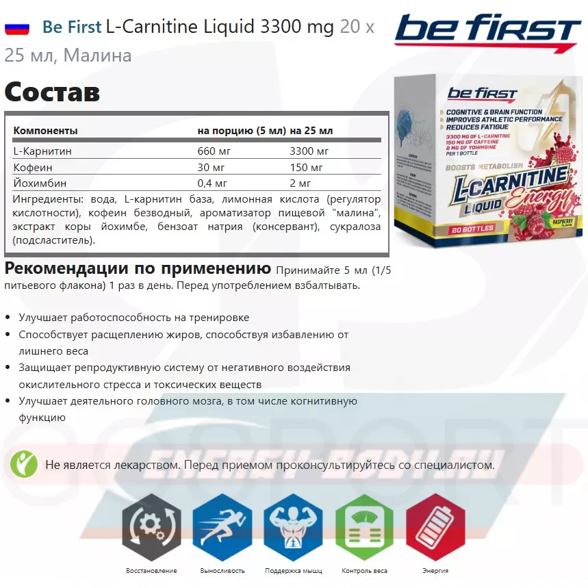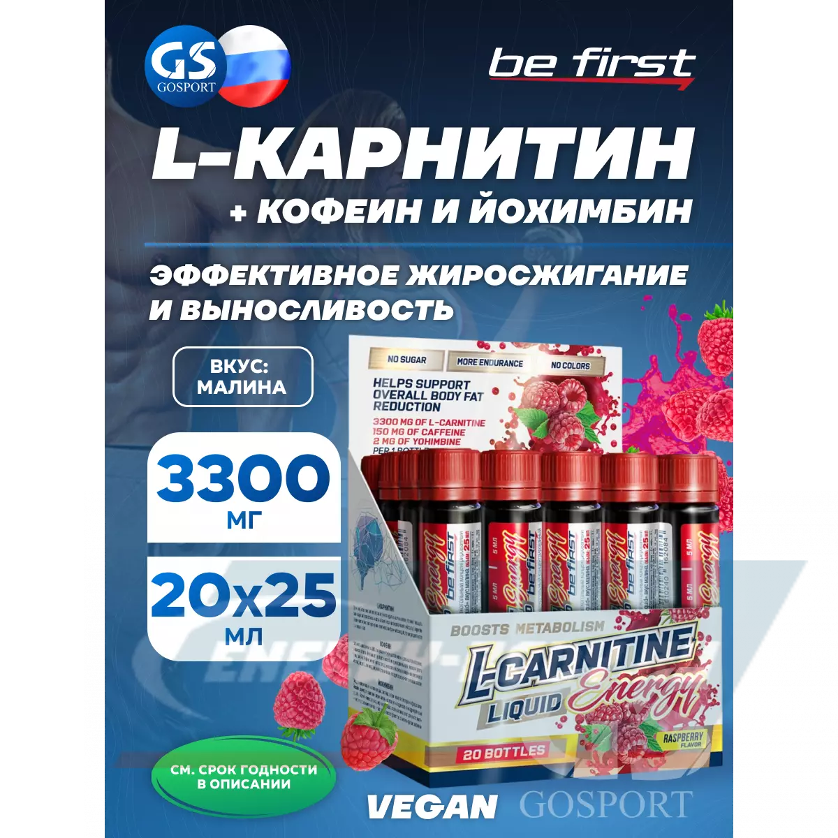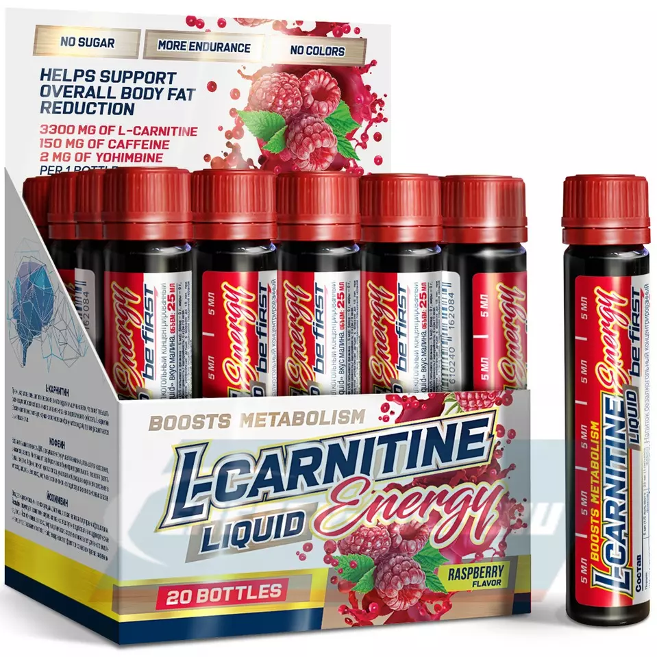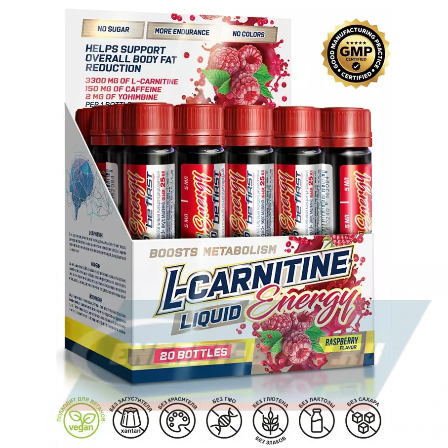 Be First L-Carnitine Liquid Energy 20 х 25 мл, Малина — для жиросжигания и выносливости