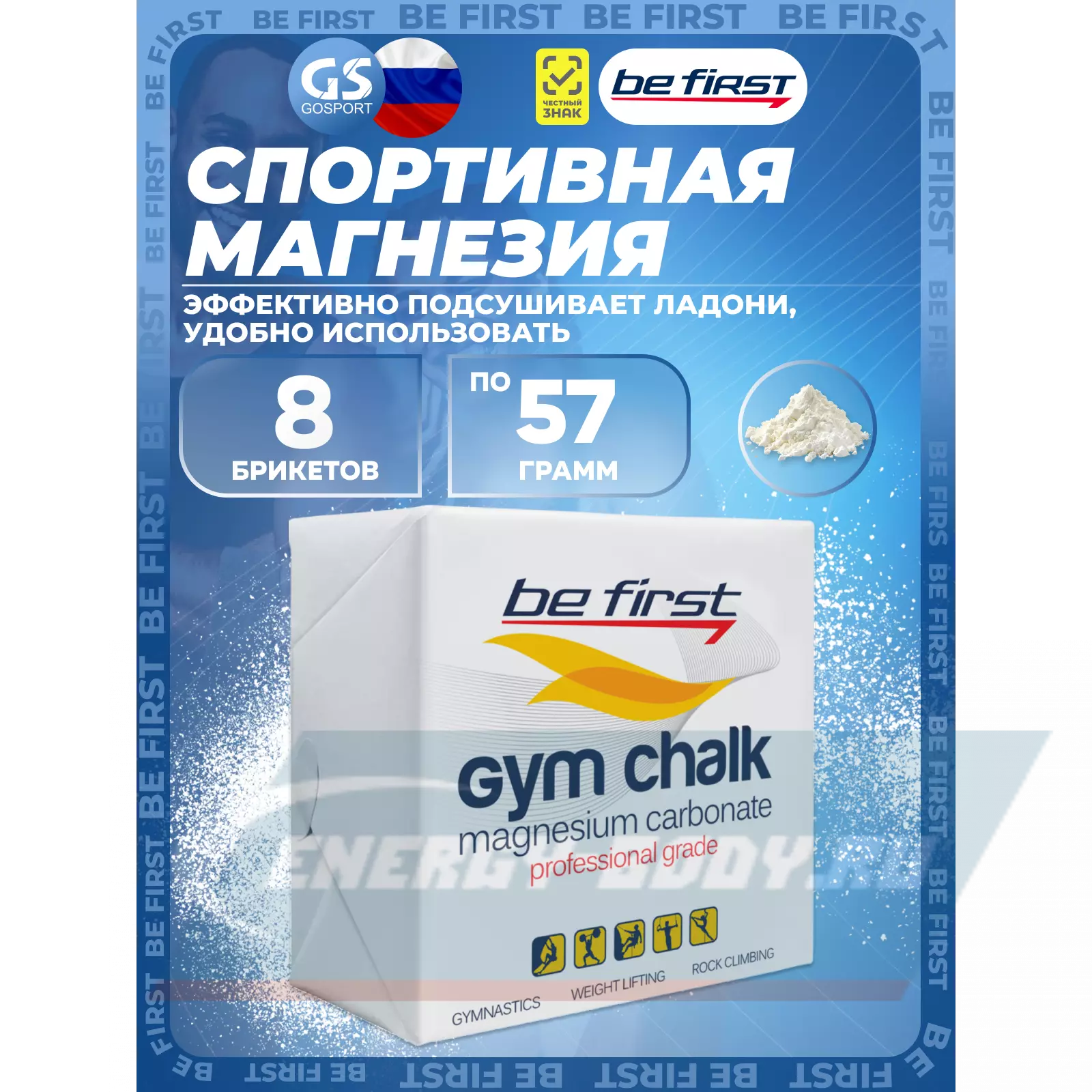 Спортивная магнезия Be First – это белый порошок, состоящий в основном из карбоната магния и предназначенный для подсушивания рук, а также улучшения их сцепления со снарядом при занятиях гимнастикой, тяжелой атлетикой, спортивным альпинизмом и другими видами спорта. Магнезия несколько снижает потоотделение в области ладоней и впитывает пот, увеличивая трение, за счет чего намного снижается вероятность проскальзывания ладоней на грифе или перекладине. Таким образом уменьшается вероятность получить травму, а также исключается необходимость тратить лишние усилия и внимание на удержание снаряда в руках – и, следовательно, повышается эффективность тренировок.