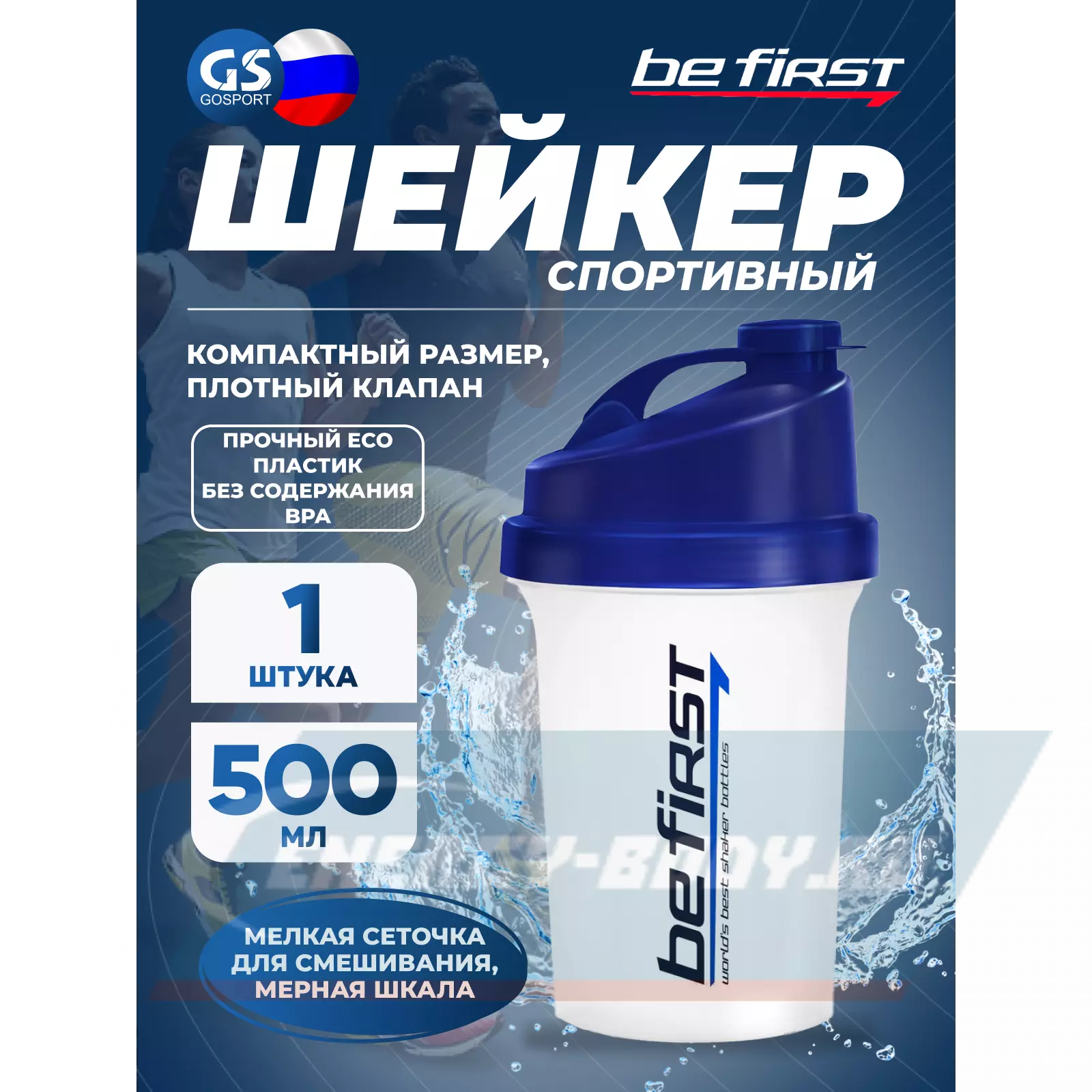 Компактный спортивный шейкер на 500 мл от Be First из пищевого ECO пластика, в котором можно смешать протеин, гейнер, аминокислоты, изотоник, креатин или что-то еще. Корпус полупрозрачный, бесцветный, с двух сторон имеет плоские прозрачные полоски, на которые нанесена мерная шкала в мл и унциях. Крышка закручивающаяся, имеет овальный носик для питья, закрываемый жестко закрепленным на крышке клапаном. Внутри — мелкая сетка в квадратных ячейках. Со стороны корпуса ее фиксируют 4 небольших выступа, для фиксации сеточки для смешивания.