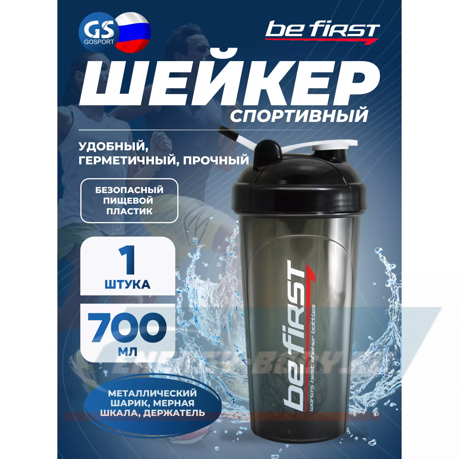 Состав Be First Шейкер 700 мл c шариком и держателем, ТРИТАН, черный (TS 1314-T-black)