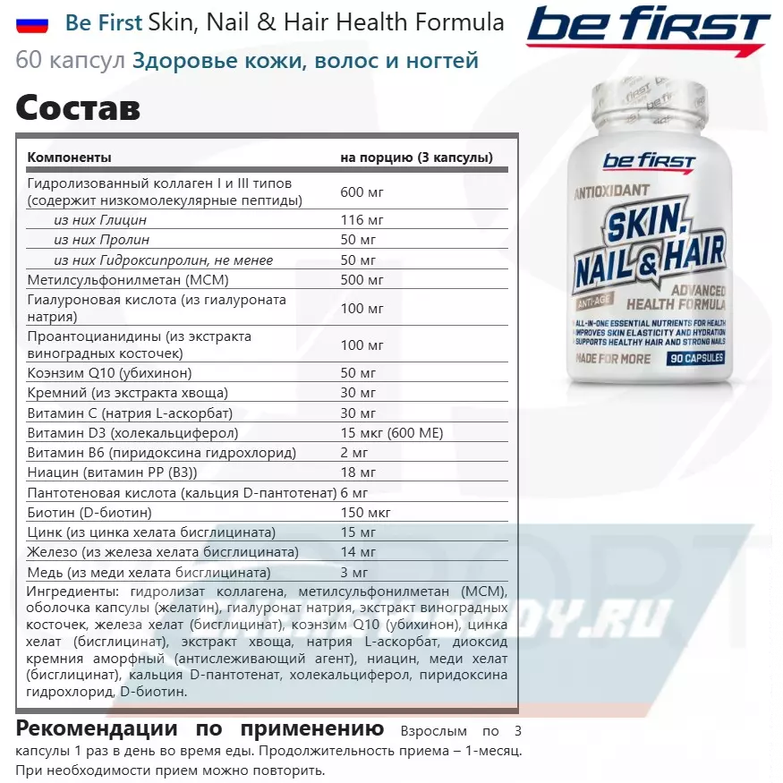 Состав Be First Skin, Nail & Hair Health Formula