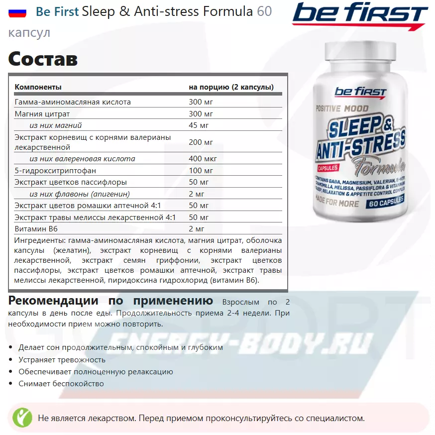 Если Вы испытываете сильное беспокойство, Вам сложно уснуть после трудового дня, мучают посторонние мысли, или приходится часто просыпаться в течение ночи – попробуйте Sleep Formula от Be First. Наше средство поможет быстрее успокоиться и незаметно погрузиться в объятия морфея.