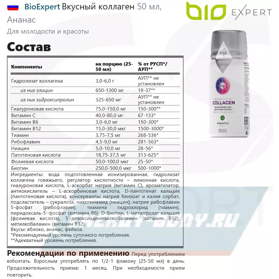 Коллаген с витамином С, биотином и гиалуроновой кислотой от BioExpert — это первый по-настоящему вкусный коллаген на рынке и результат кропотливой работы ведущего производителя инновационных спортивных нутрицевтиков и квалифицированной команды разработчиков во главе с известным врачом-неврологом и нутрициологом Владимиром Поповым (@detsdoc).