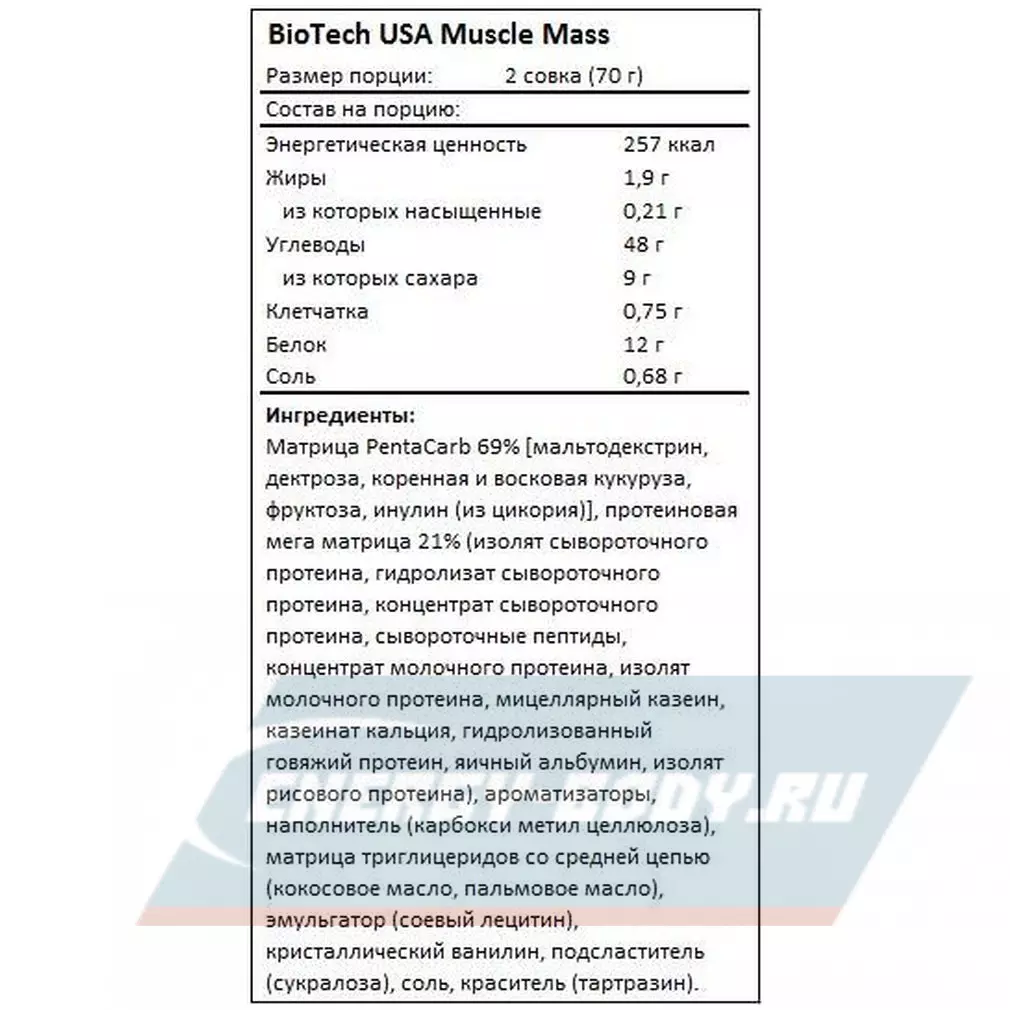 Состав BioTechUSA BioTech Muscle Mass ДУБЛЬ