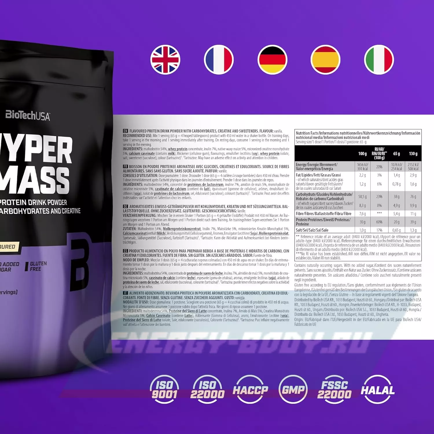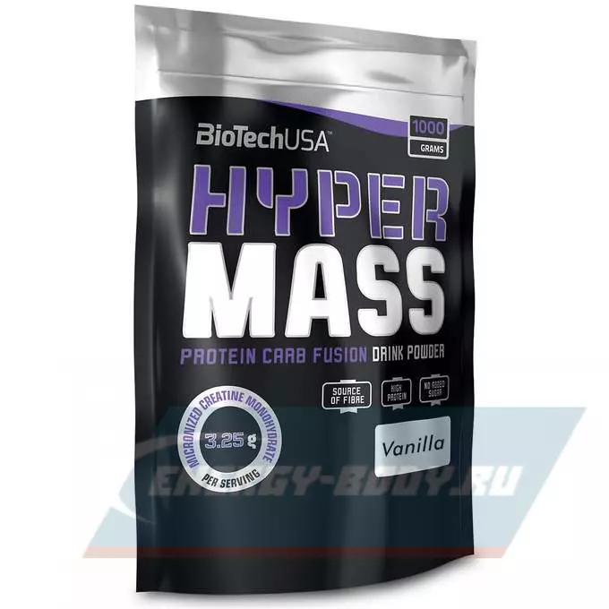 Высококалорийный гейнер Hyper Mass 5000 от BioTech USA восполнит потребности организма в белке, который способствует мышечному росту, а также обеспечит приток углеводов, поднимая уровень суточного потребления калорий. Разработан для тех, кому тяжело набирать массу. В каждой его порции также содержится 3250 мг креатина, который за счет воспроизводства АТФ увеличивает работоспособность организма.
