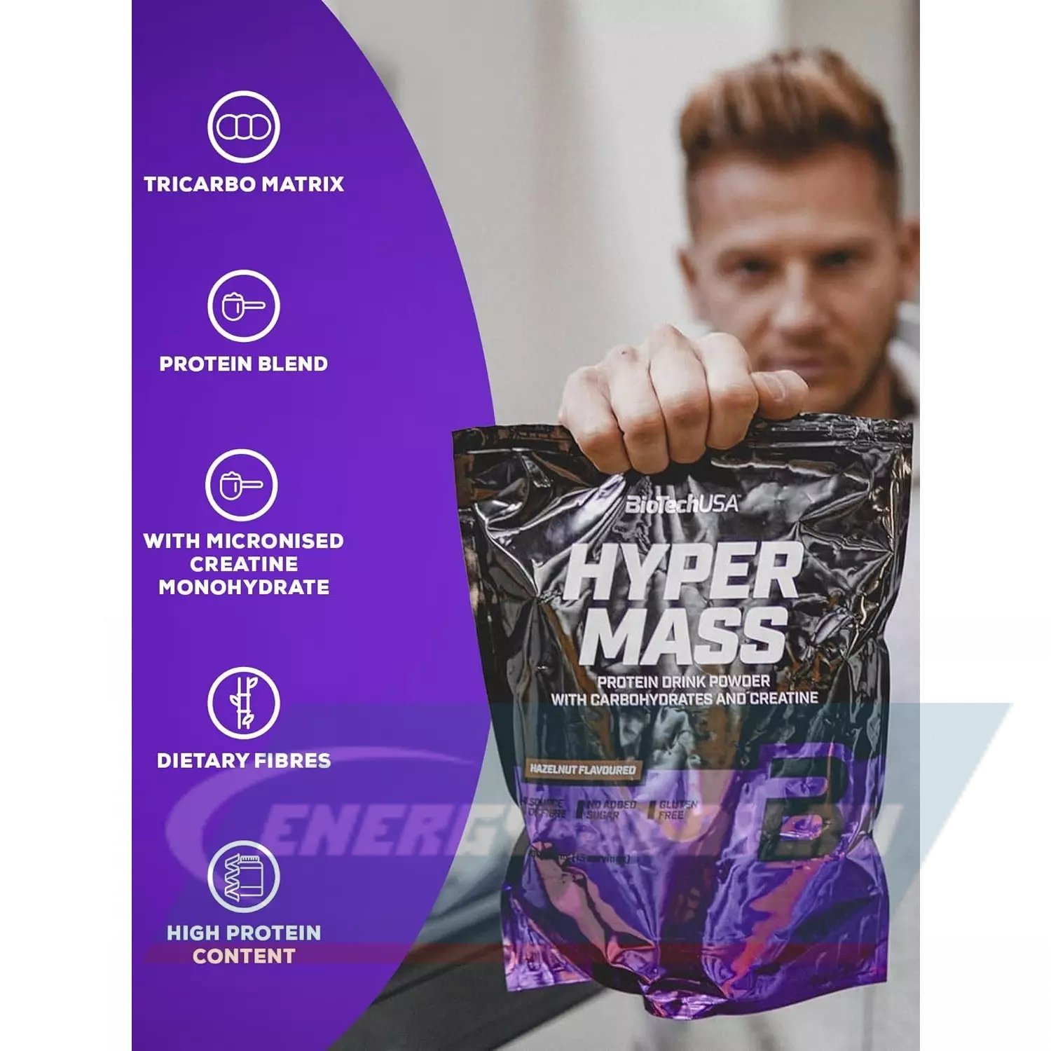 Высококалорийный гейнер Hyper Mass 5000 входит в число специализированного спортивного питания, рекомендованного для тех, кто испытывает трудности с набором массы из-за слишком быстрых обменных процессов.