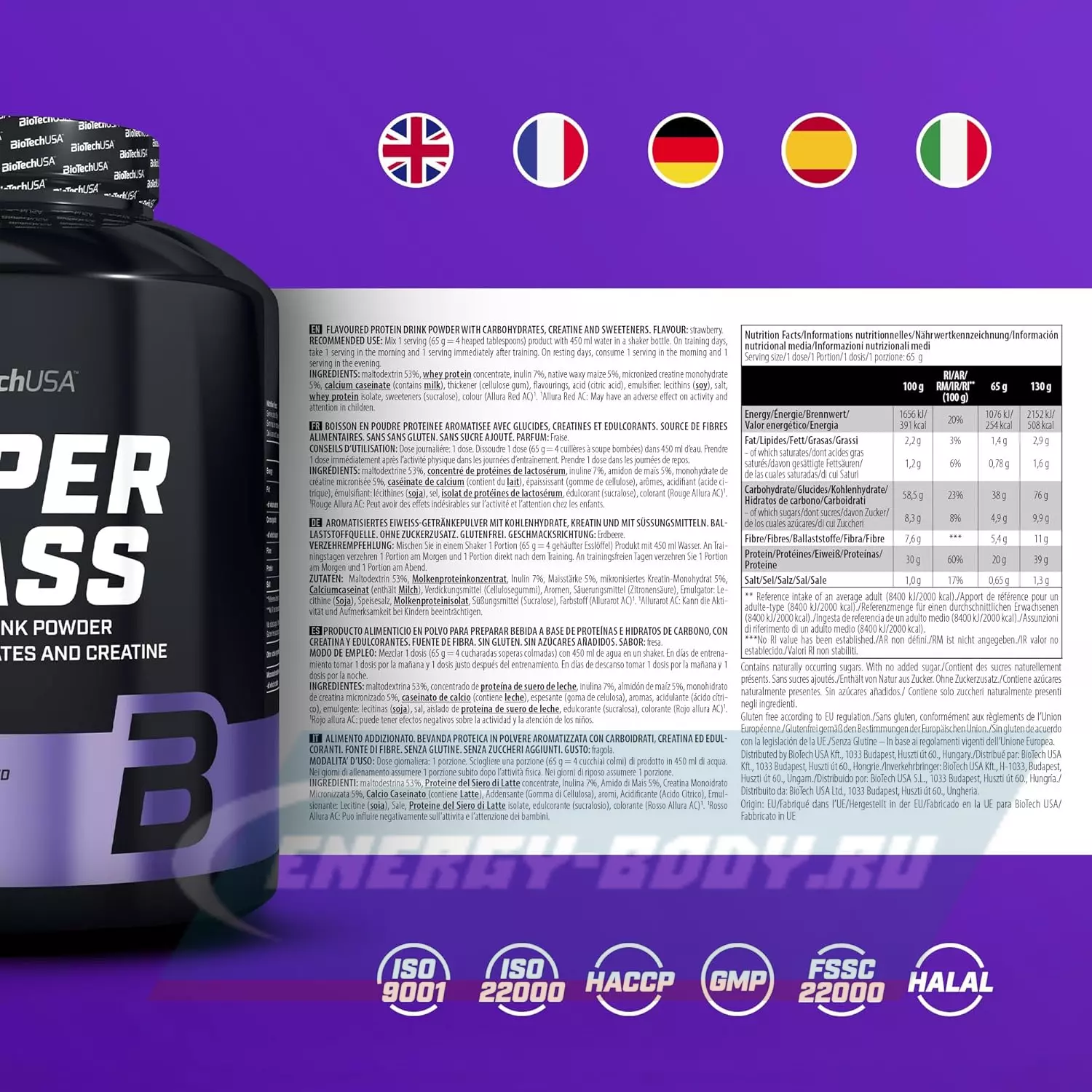 Высококалорийный гейнер Hyper Mass 5000 от BioTech USA восполнит потребности организма в белке, который способствует мышечному росту, а также обеспечит приток углеводов, поднимая уровень суточного потребления калорий. Разработан для тех, кому тяжело набирать массу. В каждой его порции также содержится 3250 мг креатина, который за счет воспроизводства АТФ увеличивает работоспособность организма.