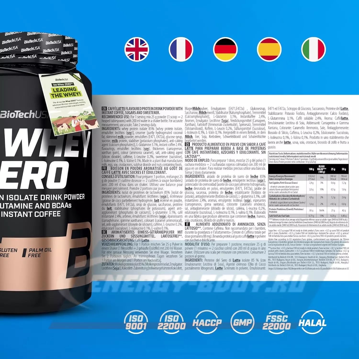 Состав BioTechUSA Iso Whey Zero 84 mg Caffeine