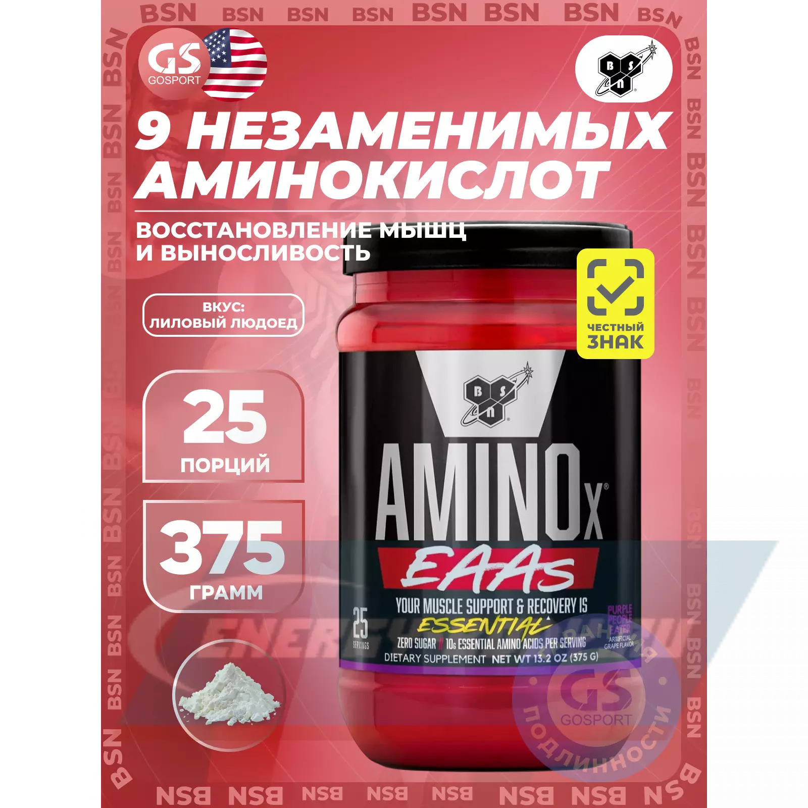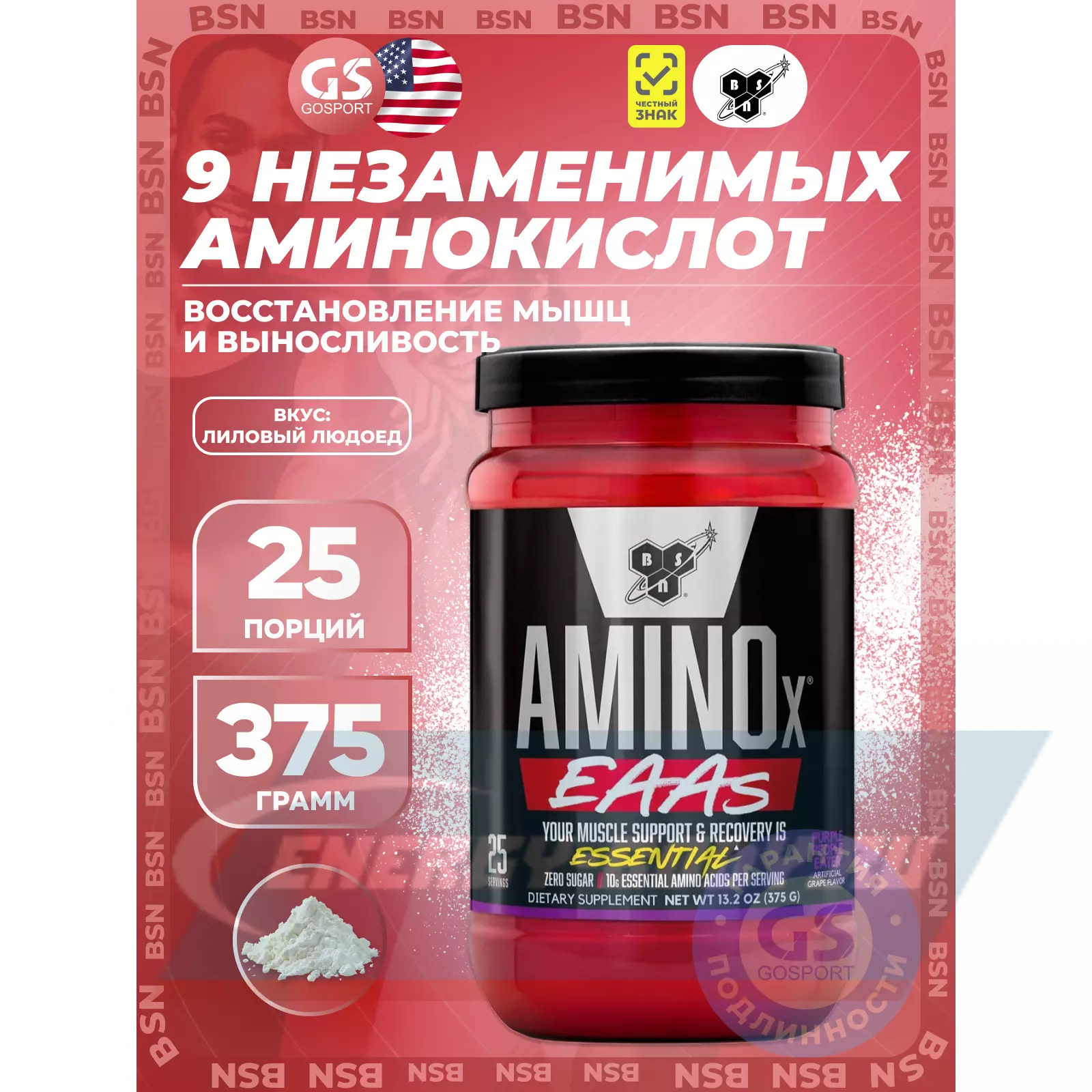 Каждая порция в AMINOX EAAS от BSN содержит в сумме 10 г всех девяти EAA, 5 г из трех важнейших BCAA, а остальные 5 г из оставшихся шести EAA. Эти EAA являются основной особенностью продукта, без дополнительного таурина или цитруллина, как в текущей и обычной версии AminoX.