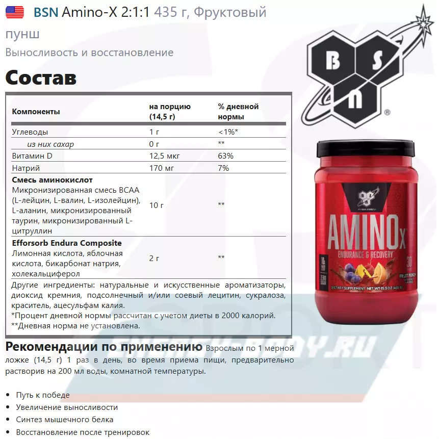 Для серьезных спортсменов, которые знают о том, как важно, чтобы мышцы хорошо восстанавливались. AminoX — это формула без кофеина, содержащая 10 г смеси аминокислот, включая аминокислоты с разветвленной цепью (2:1:1), а также L-аланин, таурин и L-цитруллин, которые способствуют синтезу белка в мышцах после каждой тренировки.