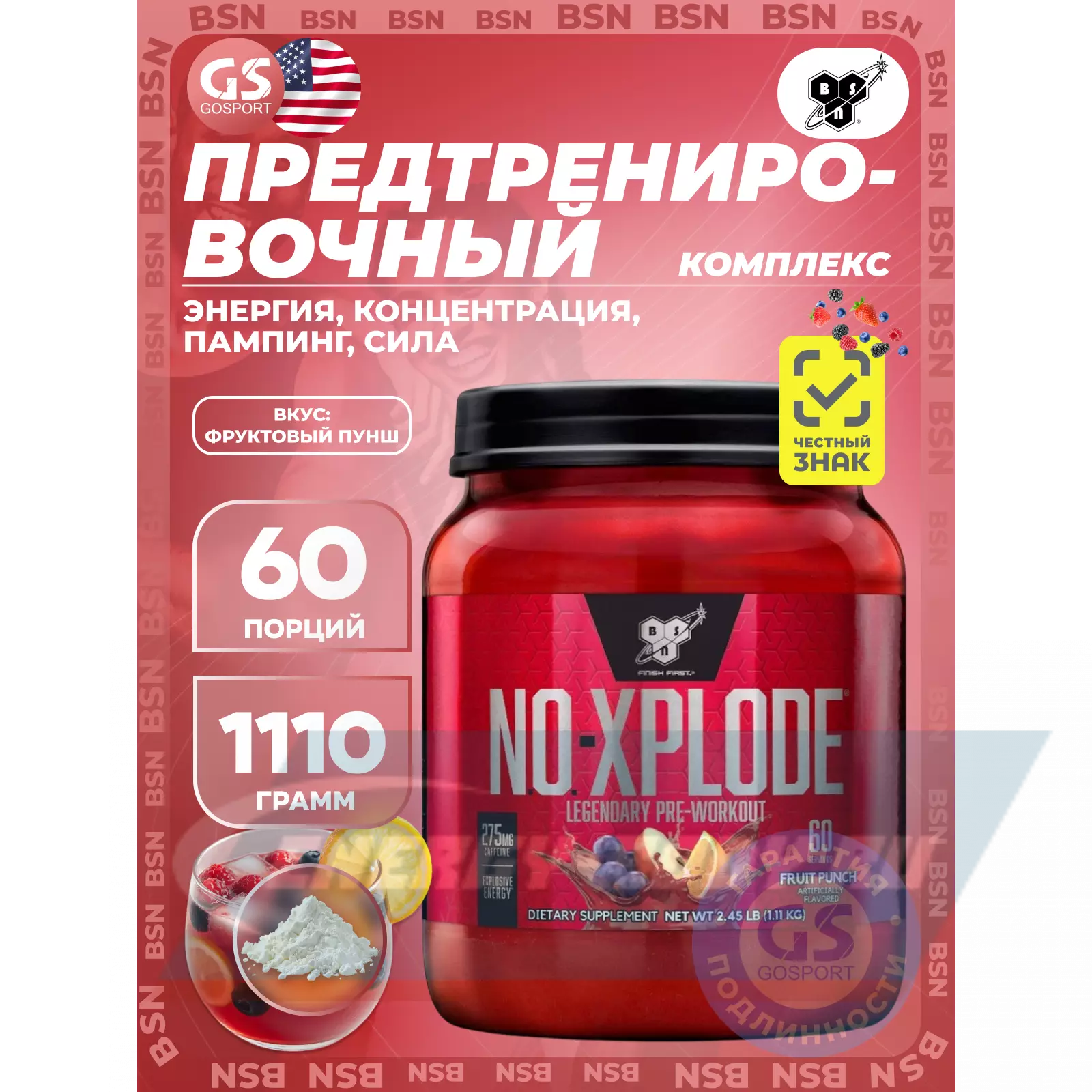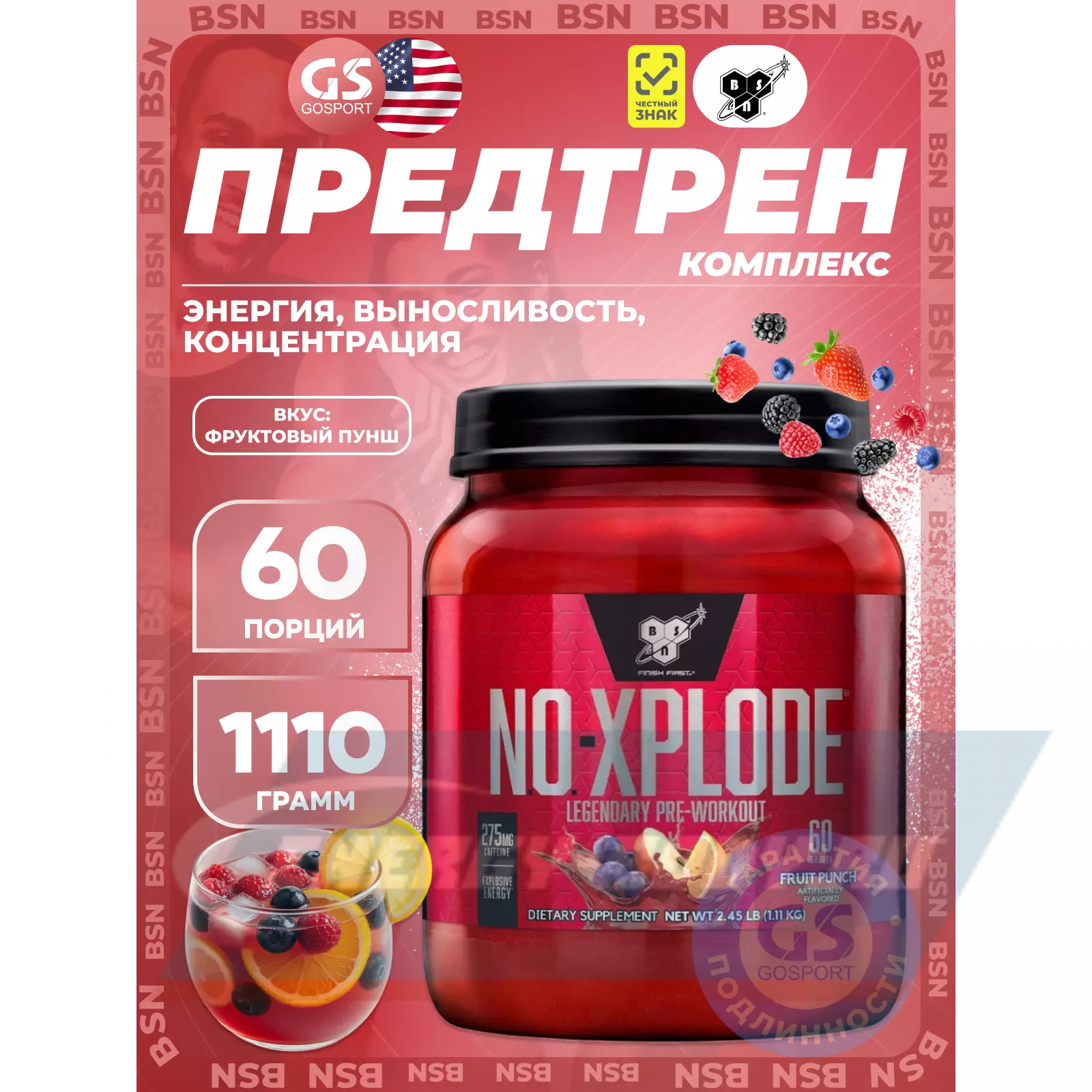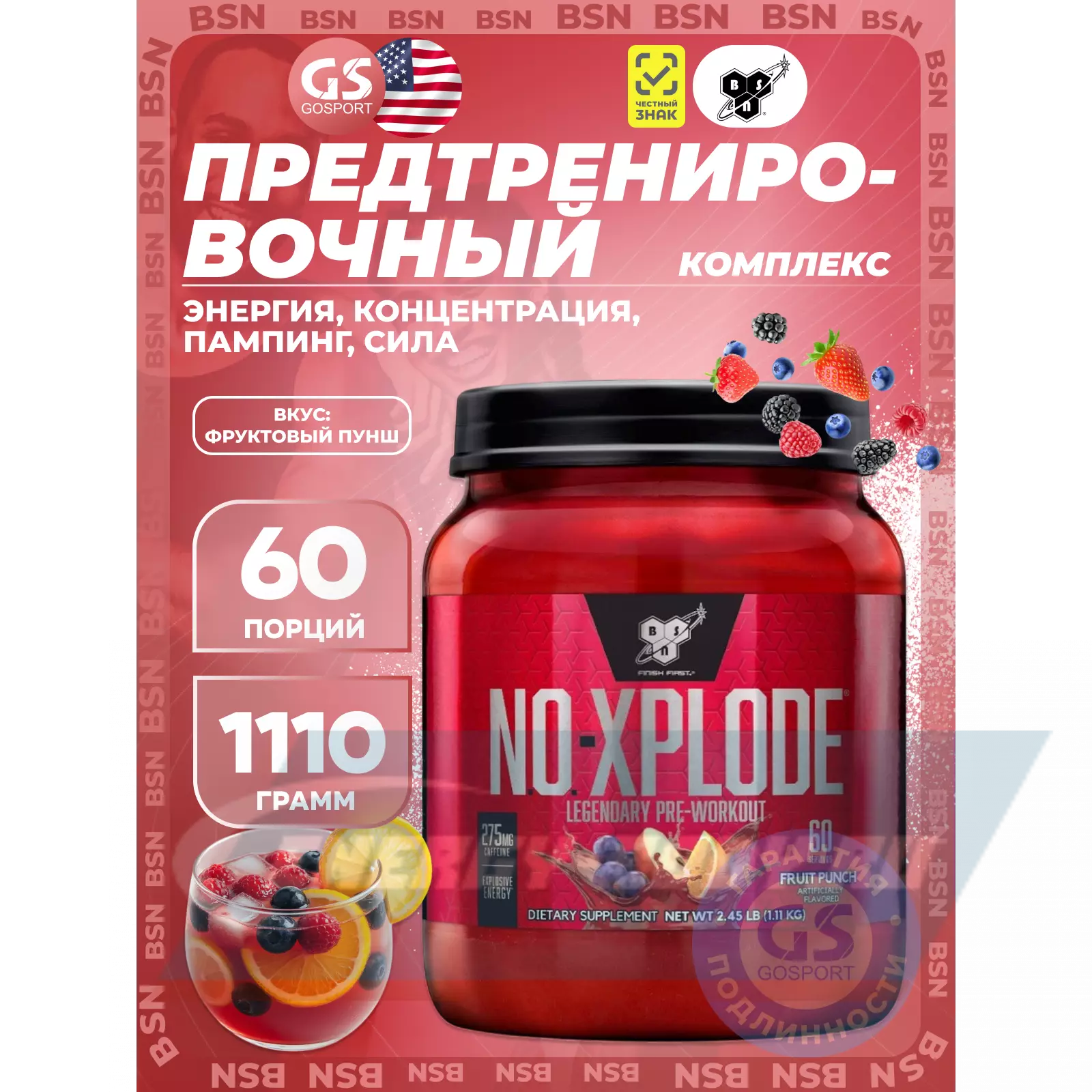 Для проведения наиболее эффективной тренировки необходимы, как ментальная, так и физическая энергия. Сосредоточенность нужна для контроля над энергией и управления сильной мышечно-мозговой связью. Эта мышечно-мозговая связь помогает достичь Вам большей интенсивности на тренировках и дает толчок организму к преодолению старых пределов. В BSN мы знаем, что предтренировочный комплекс должен обладать всеми этими возможностями. Мы разработали NO-XPLODE, полноценный предтренировочный комплекс, для помощи в получении большей энергии и выпосливости, поддержки мозгового центра и мышечной силы, а также чтобы дать вам непревзойденную интенсивность для достижения атлетами любого уровня максимальной работоспособности на тренировках.