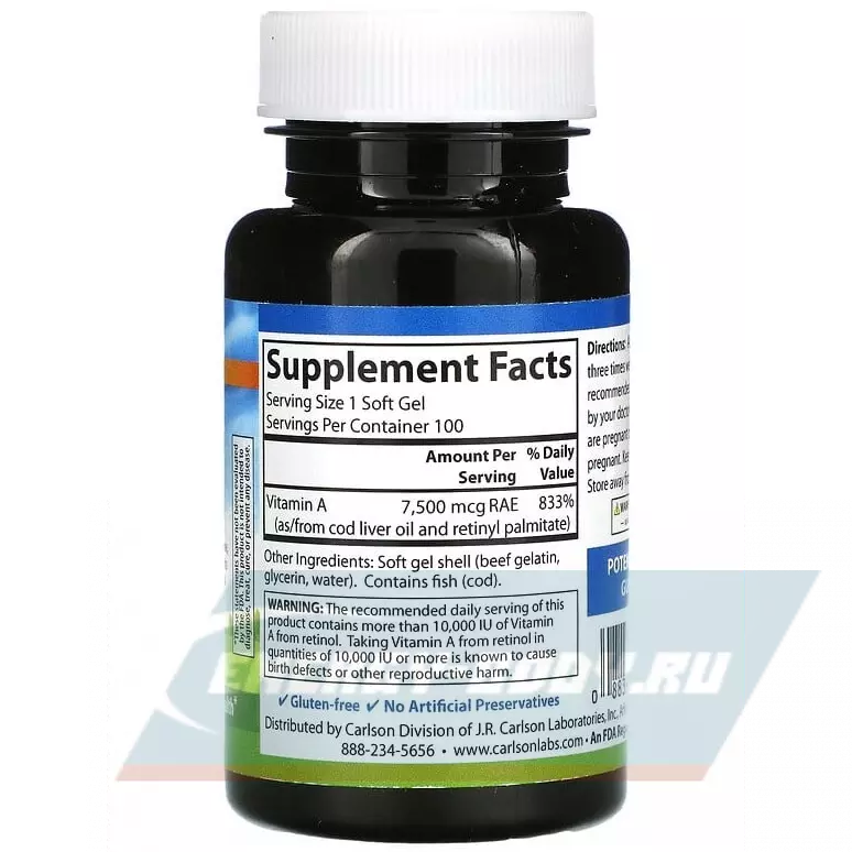 Состав Carlson Labs Vitamin A 25000 IU