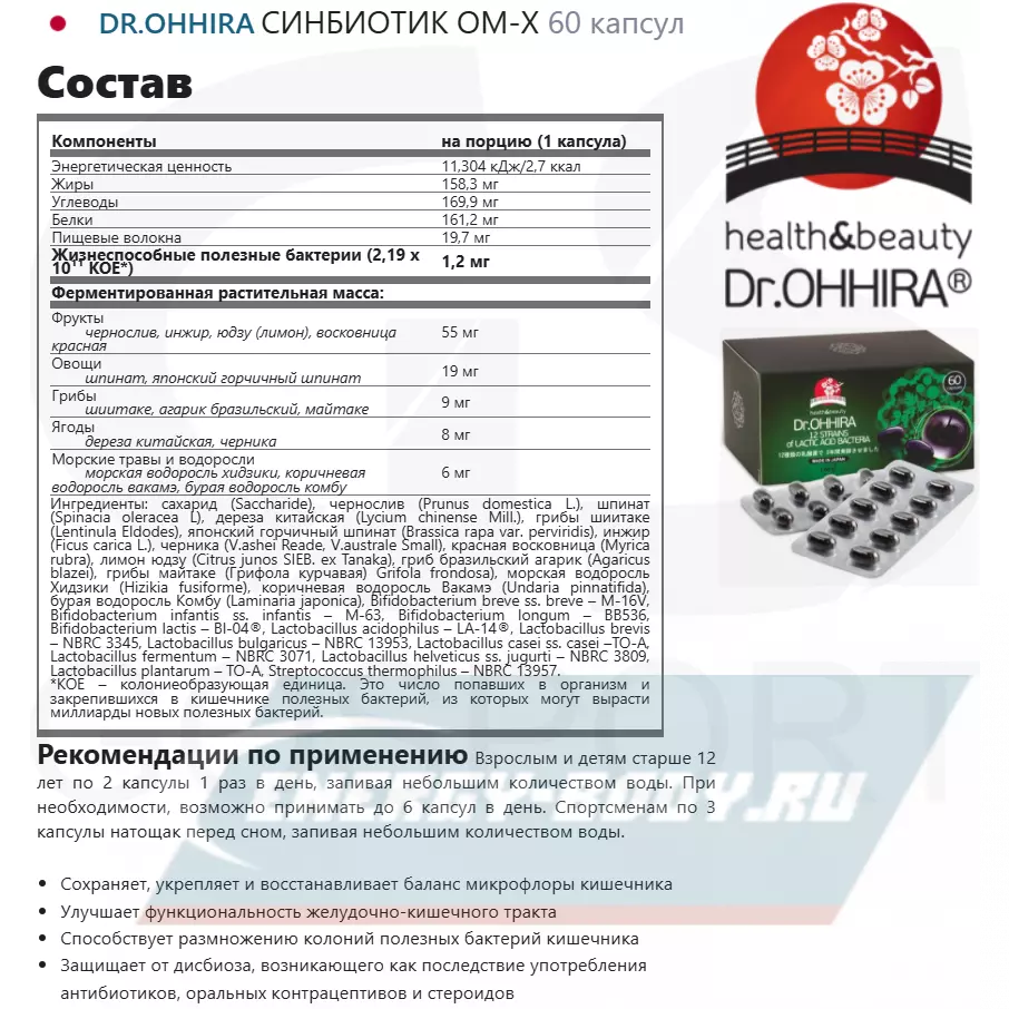 Состав DR.OHHIRA СИНБИОТИК OM-X