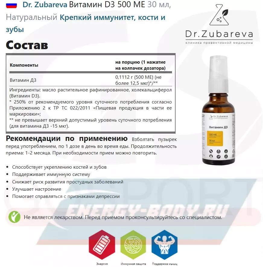 Витамин D3 500 МЕ от Dr.Zubareva — это: