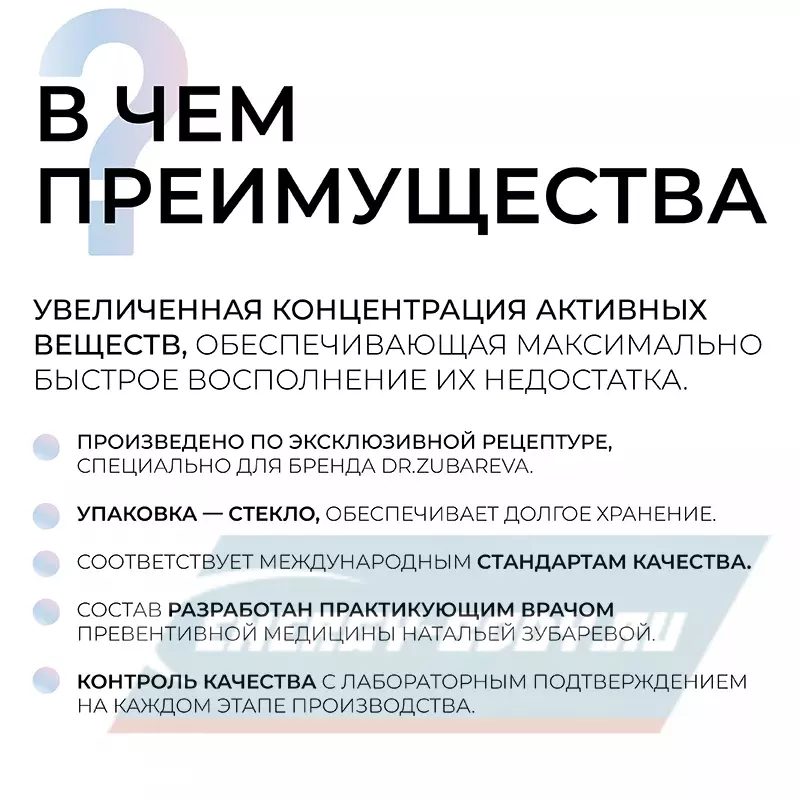 - Состав, разработанный практикующим врачом превентивной медицины Натальей Зубаревой.