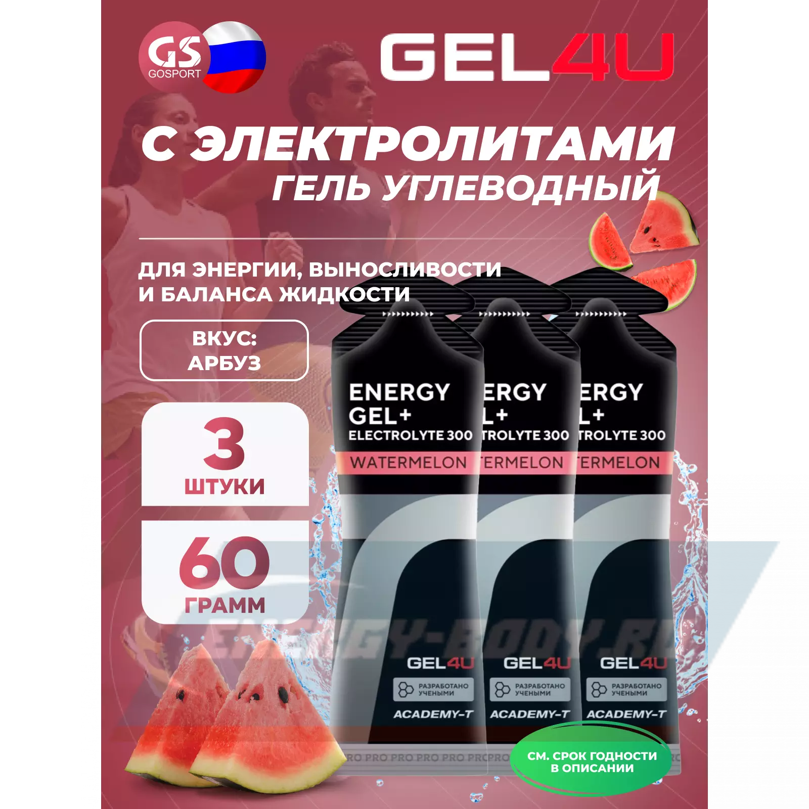 GEL4U Energy GEL + Electrolyte 300 3 x 60 г, Арбуз — Энергия, выносливость и баланс жидкости