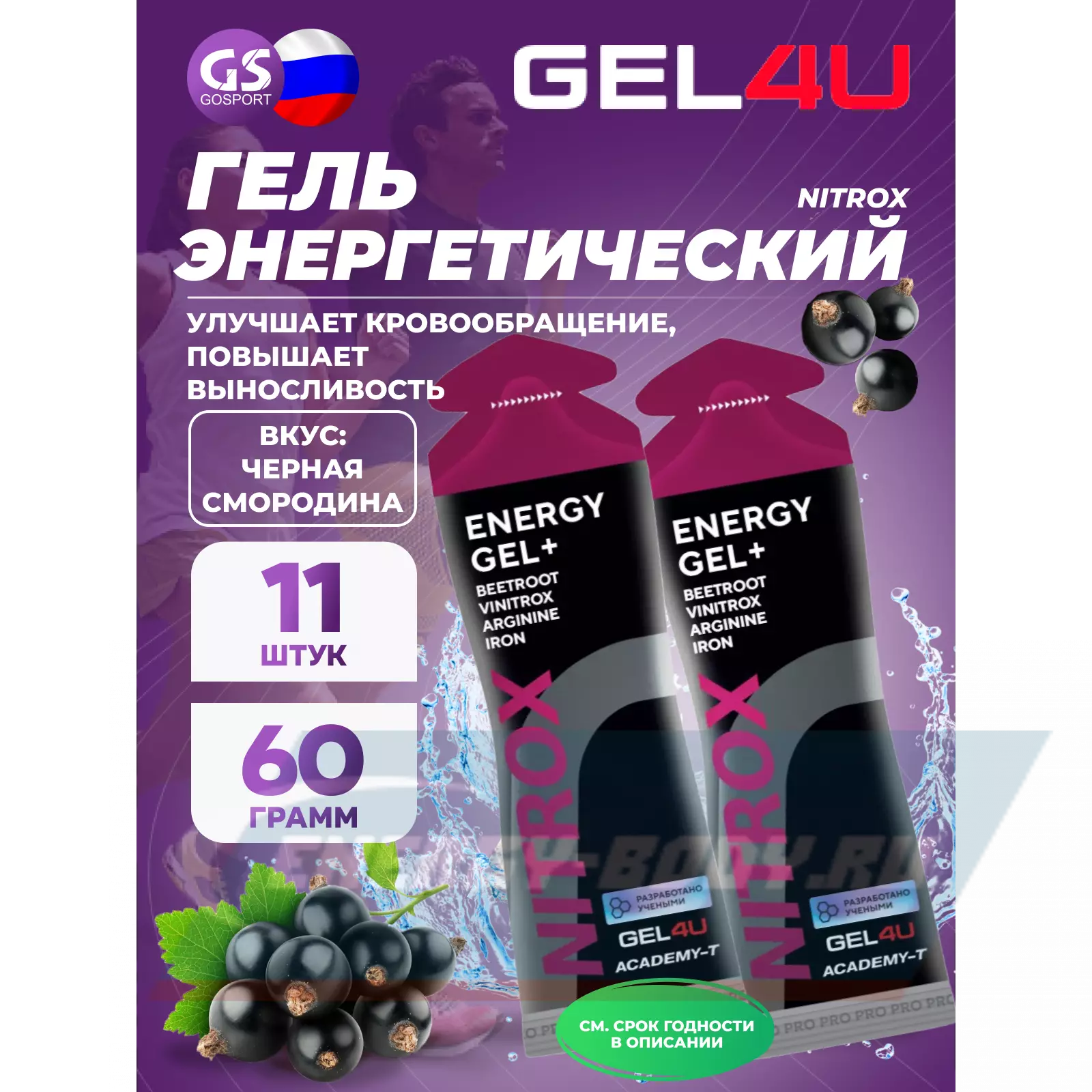 GEL4U NITROX 11 x 60 г, Черная смородина — Повышает выносливость и улучшает кровообращение