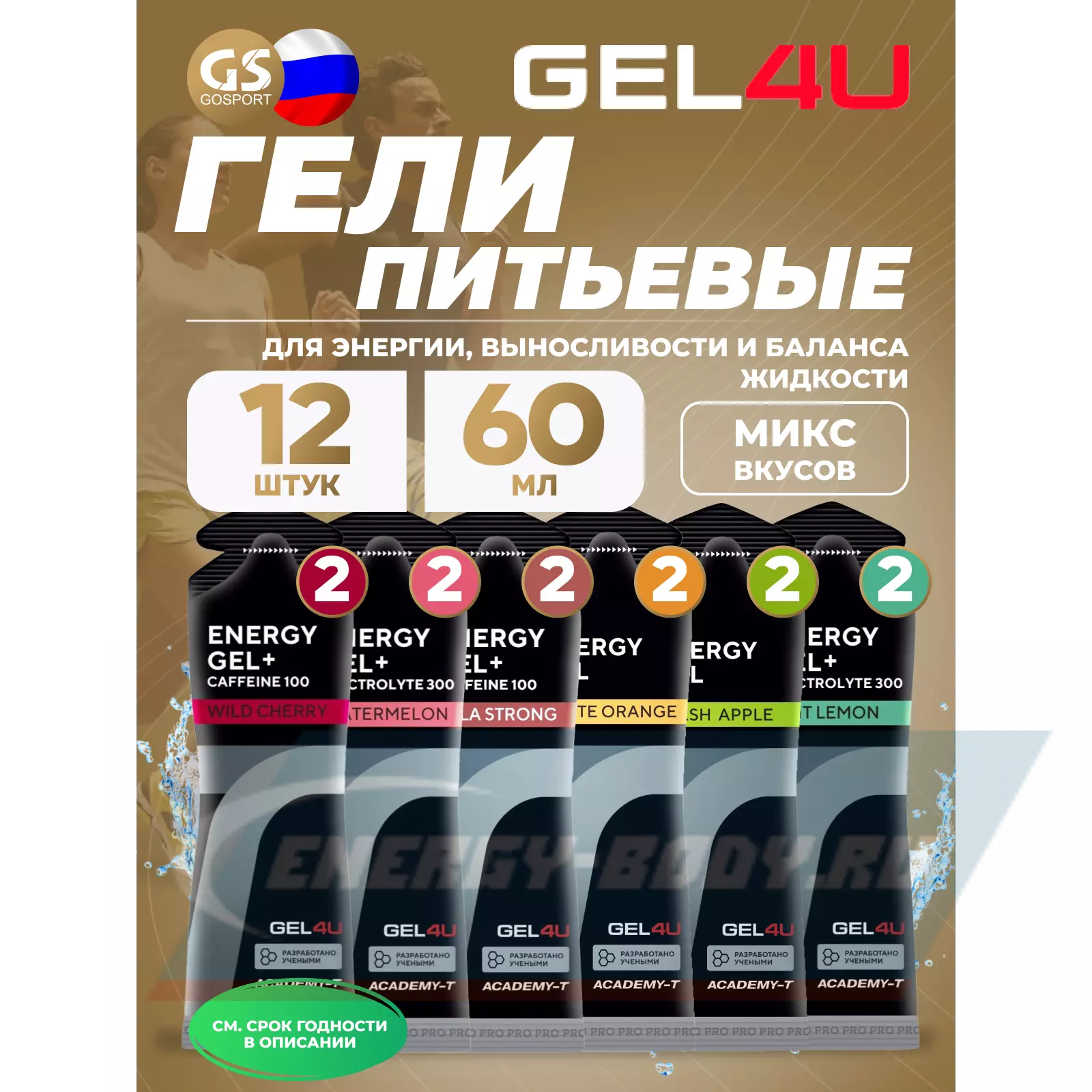 GEL4U Energy Gel MIX 12 x 60 г, Апельсин, Яблоко, Лимон и Мята, Соленый Арбуз, Вишня, Кола
