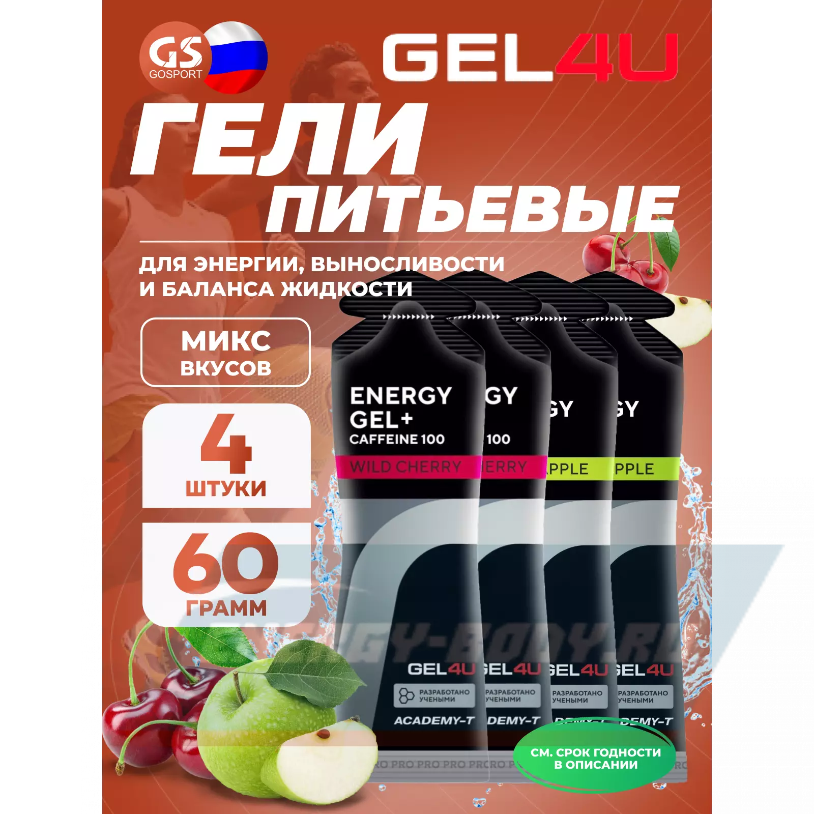 Energy Gel MIX 4 x 60 г, Яблоко, Вишня