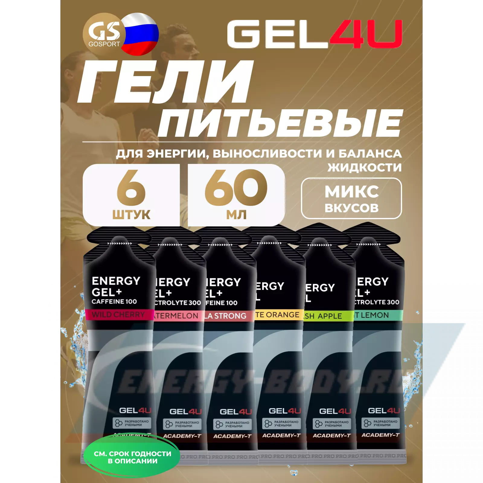 GEL4U Energy Gel MIX 6 x 60 г, Апельсин, Яблоко, Лимон и Мята, Соленый Арбуз, Вишня, Кола