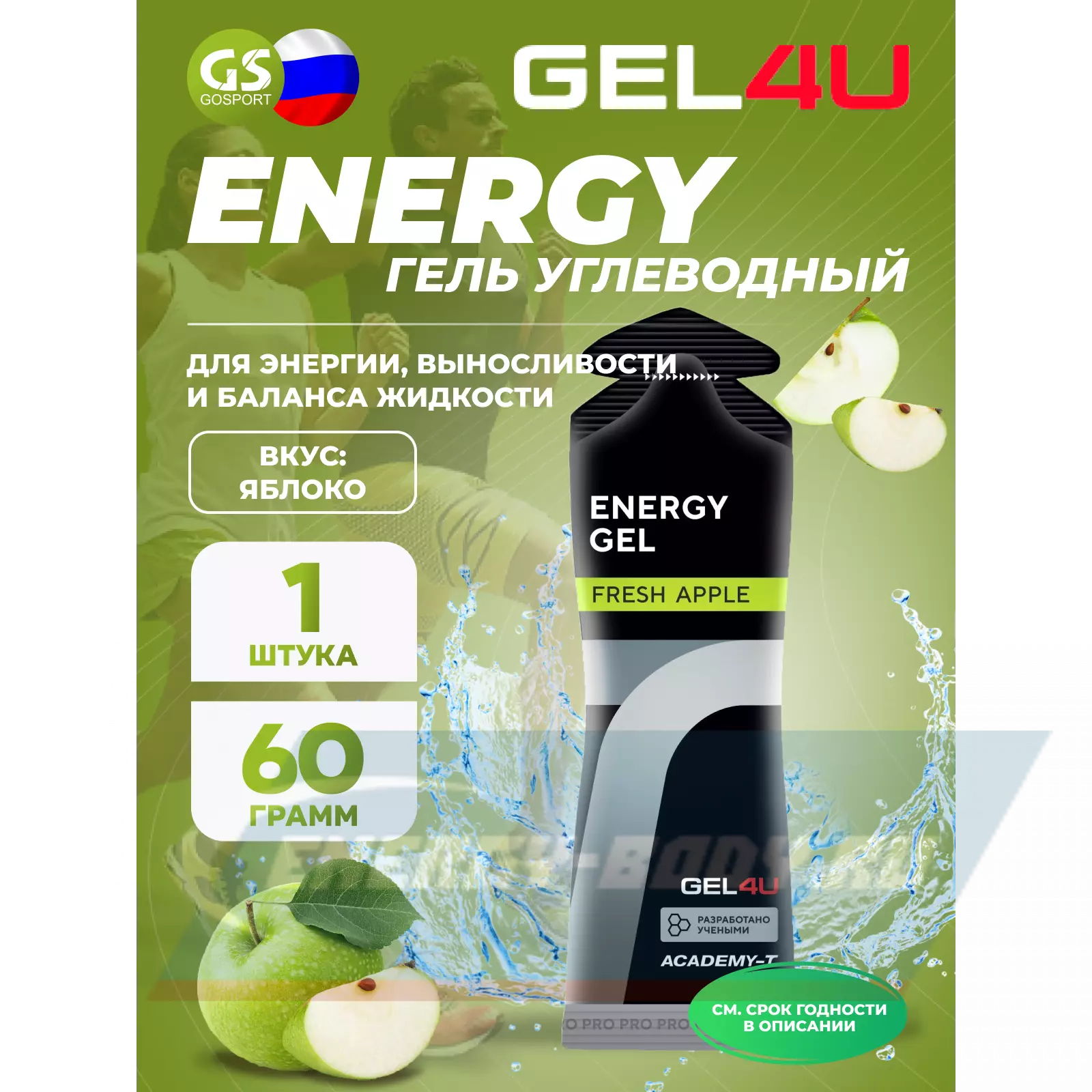 Энергетический гель GEL4U Energy GEL 60 г, Яблоко Энергетический гель GEL4U Energy GEL 60 г, Яблоко Энергетический гель GEL4U Energy GEL 60 г, Яблоко