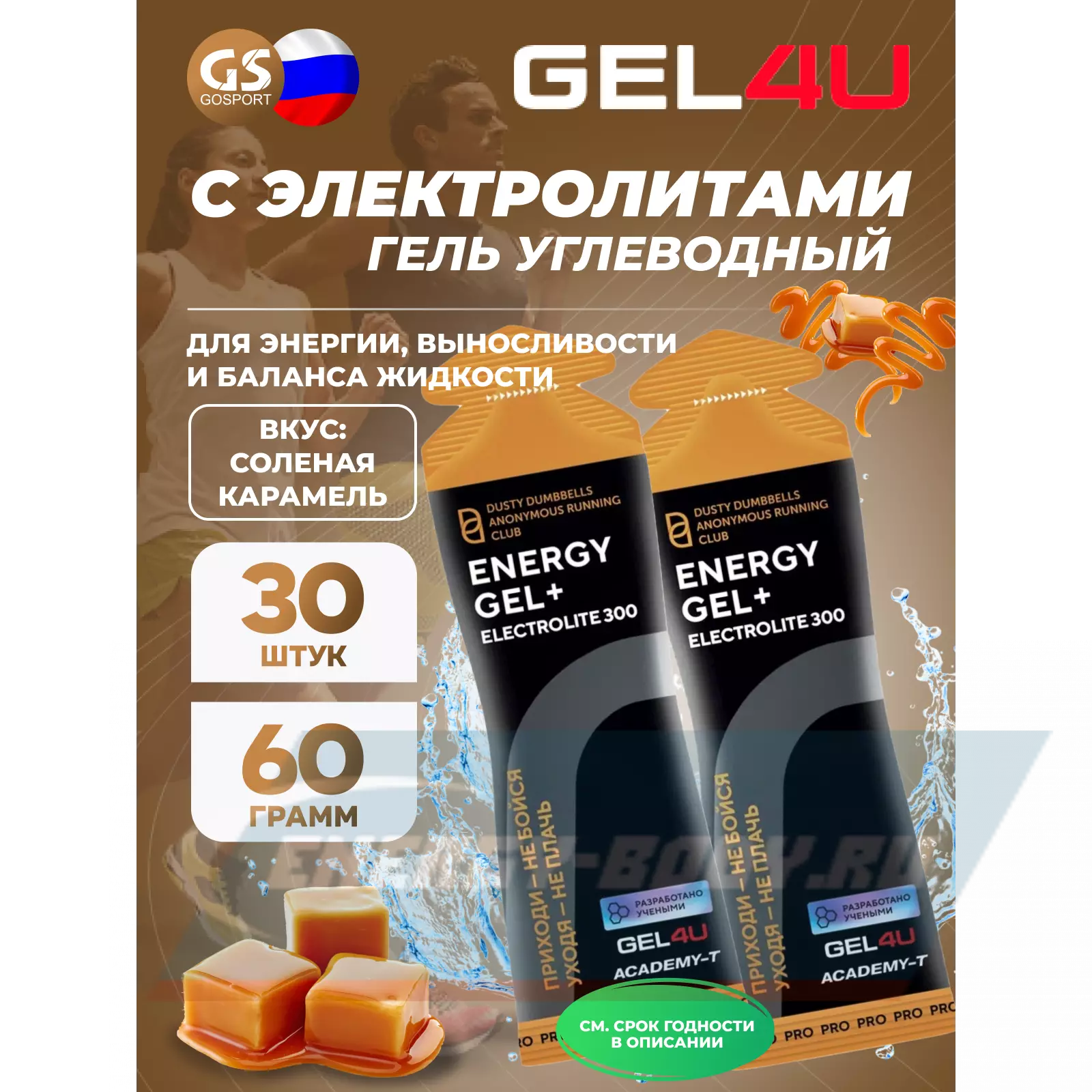 GEL4U Energy GEL + Electrolyte 300 30 x 60 г, Соленая карамель — Энергия, выносливость и баланс жидкости