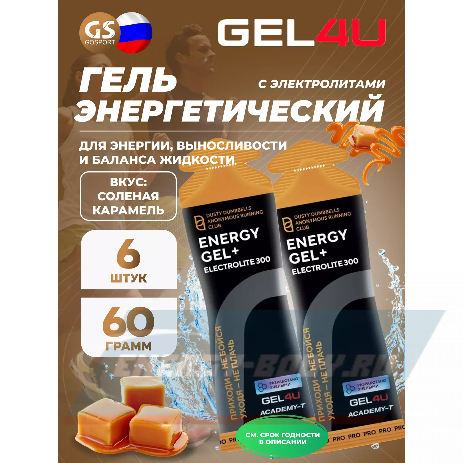 GEL4U Energy GEL + Electrolyte 300 6 x 60 г, Соленая карамель — Энергия, выносливость и баланс жидкости